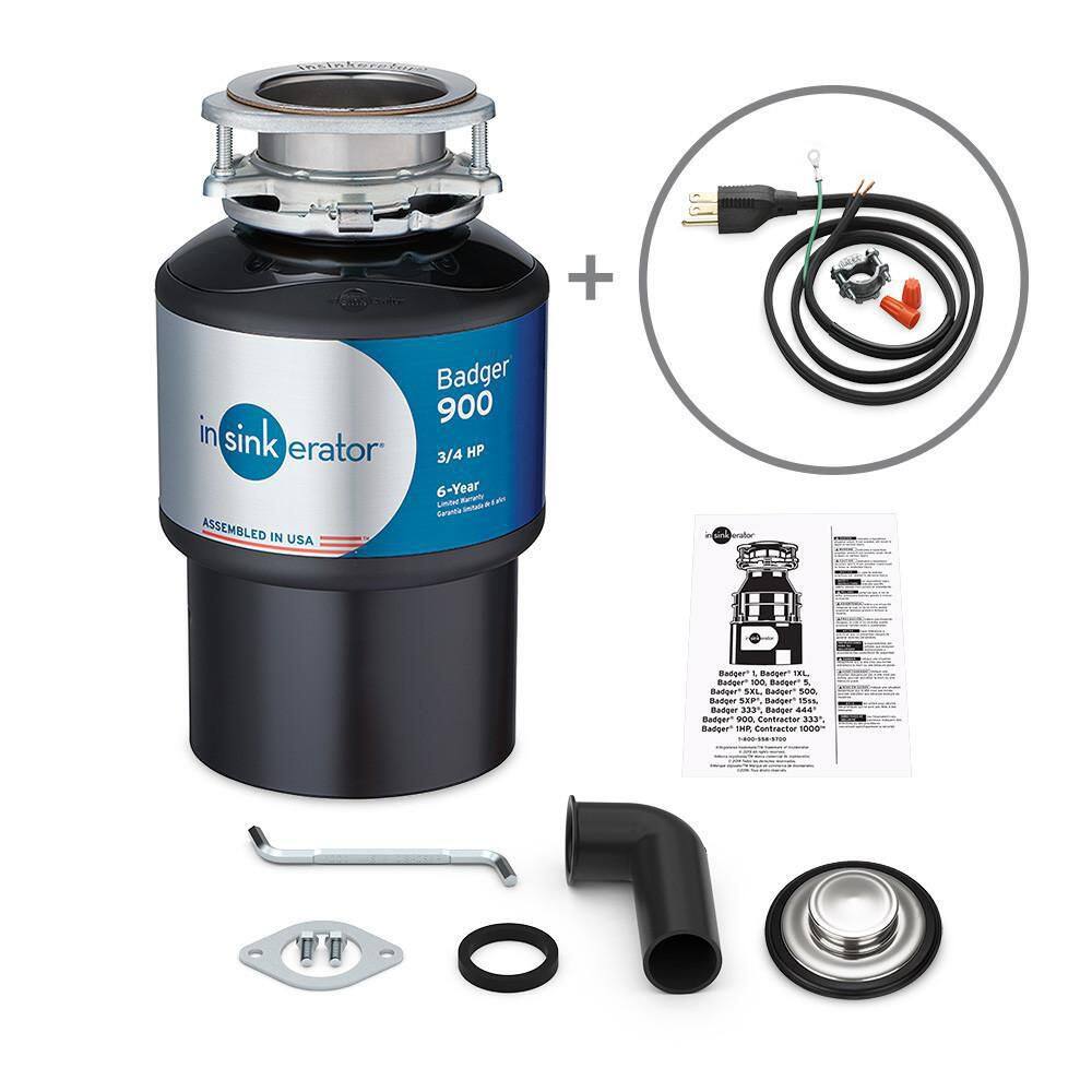 InSinkErator BADGER 900L&L W/CRD-00 Badger 900 Lift & Latch Power Series 3/4 HP Continuous Feed Garbage Disposal with Power Cord Kit