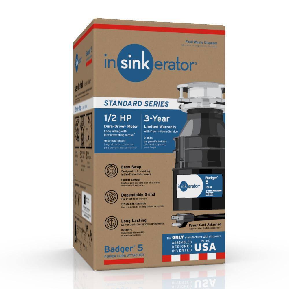 InSinkErator BADGER 5 W/C Badger 5 Lift & Latch Standard Series 1/2 HP Continuous Feed Garbage Disposal with Power Cord