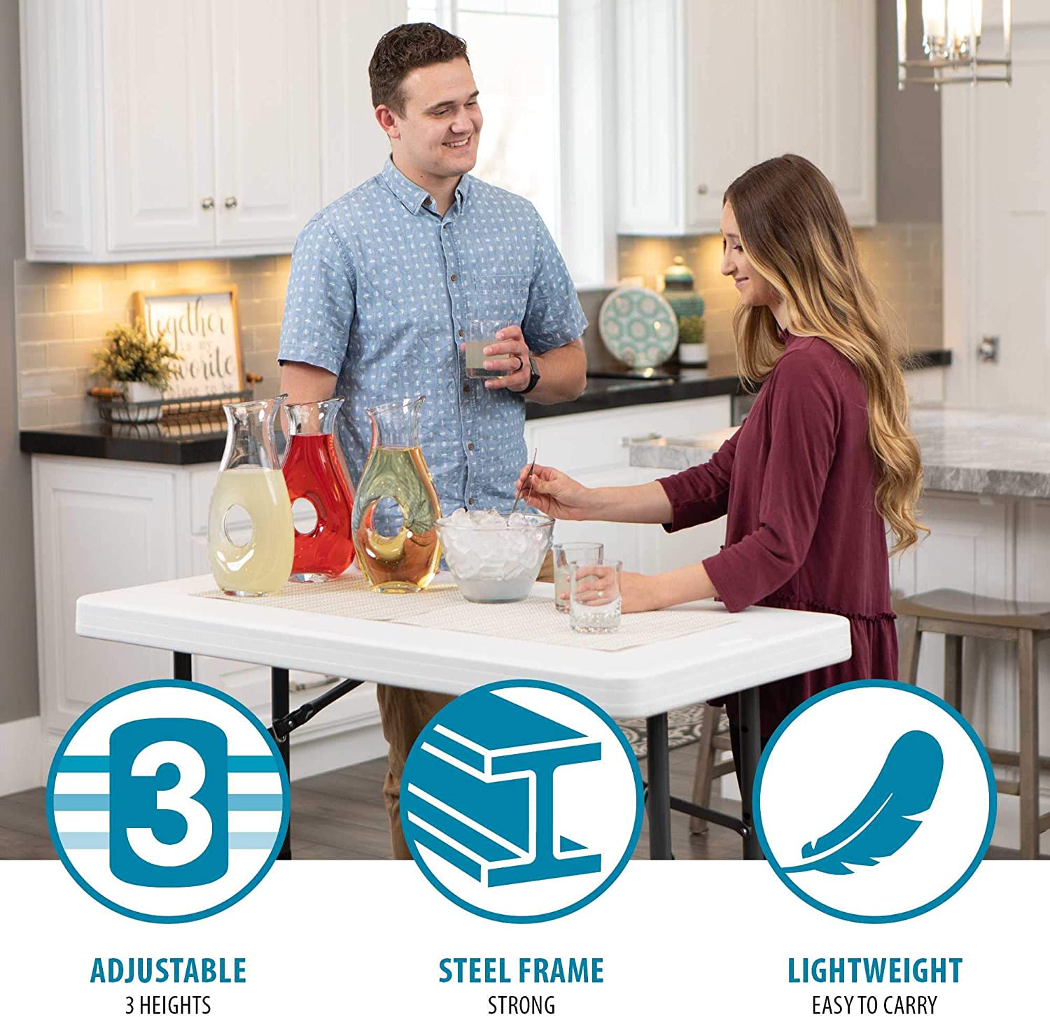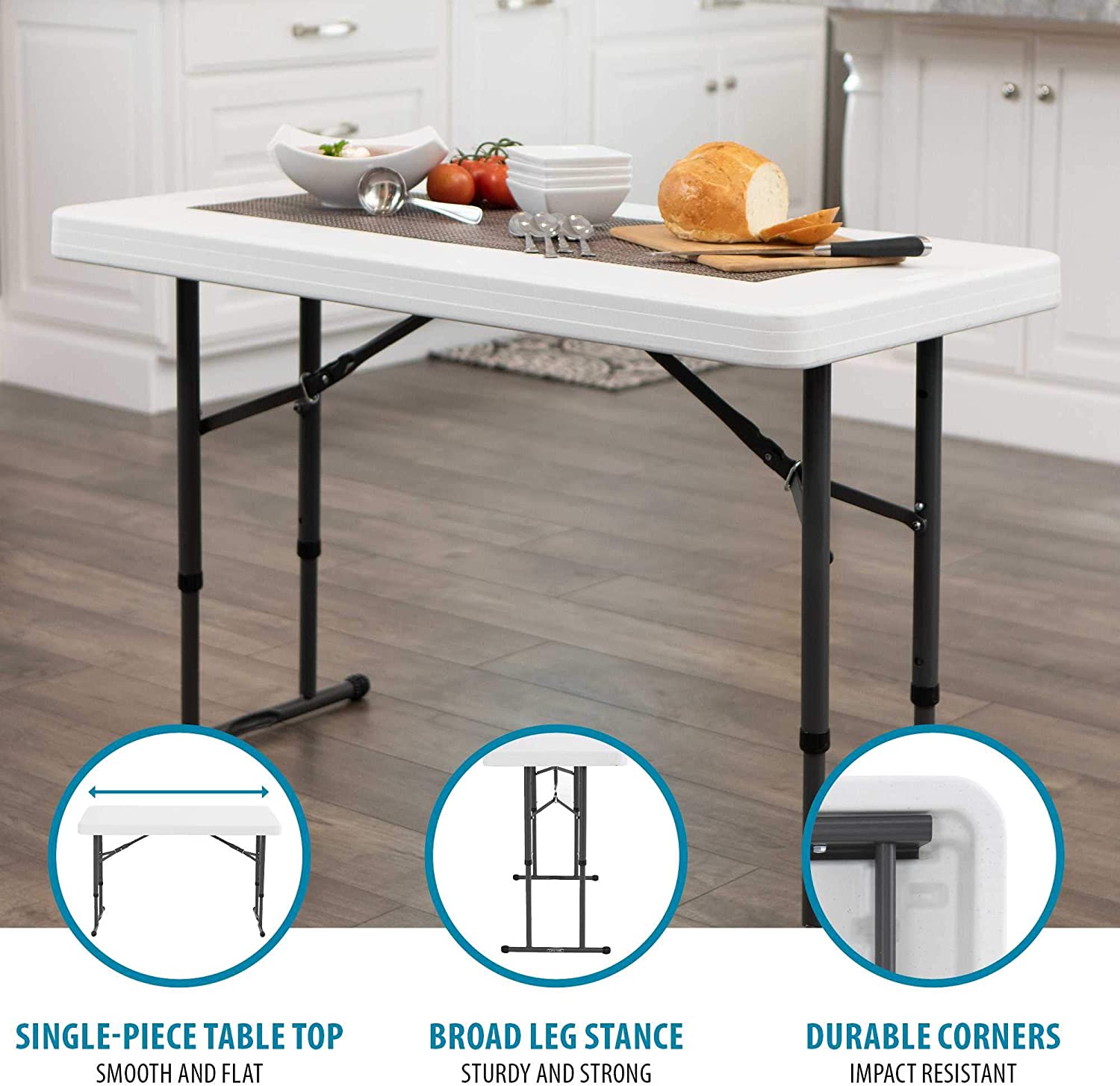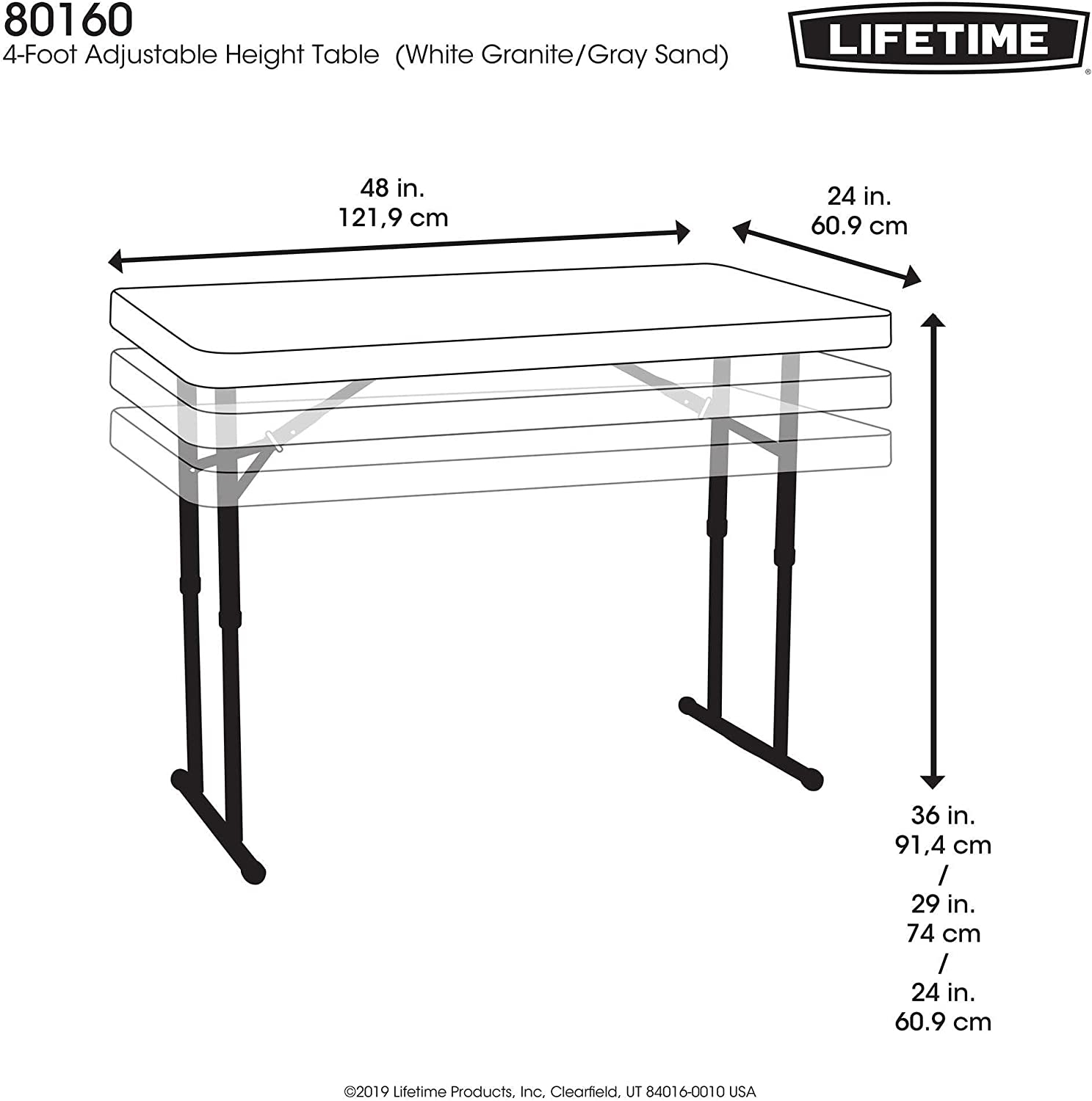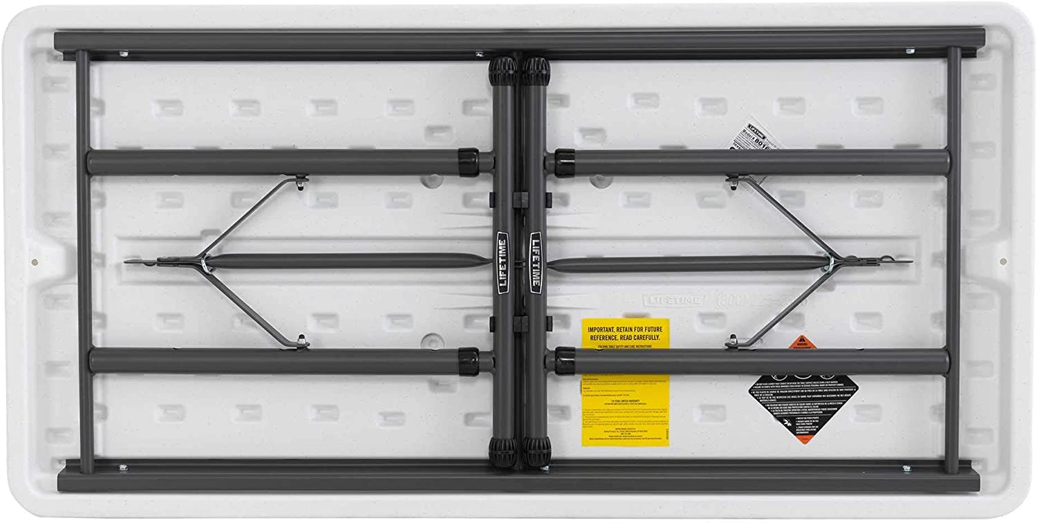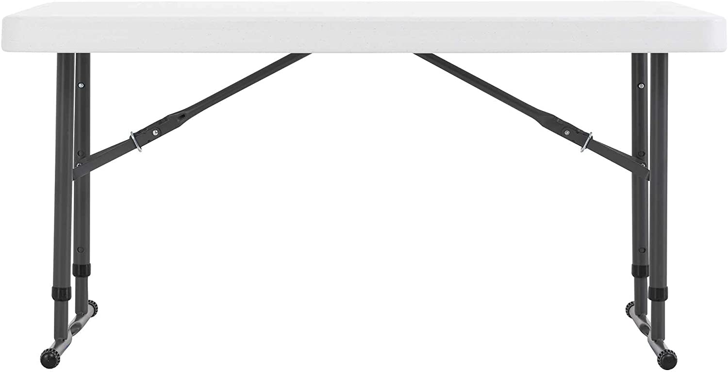 LIFETIME 80160 Commercial Height Adjustable Folding Utility Table. 4 Feet. White Granite