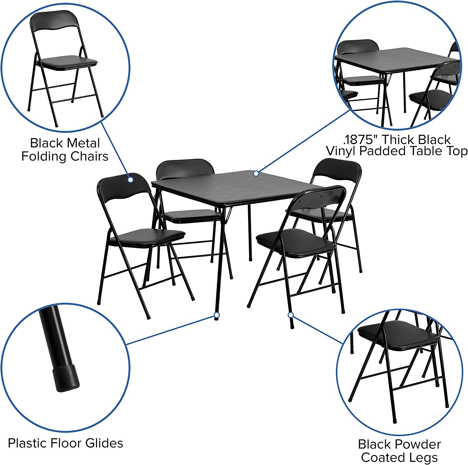 Flash Furniture 5 Piece Black Folding Card Table and Chair Set