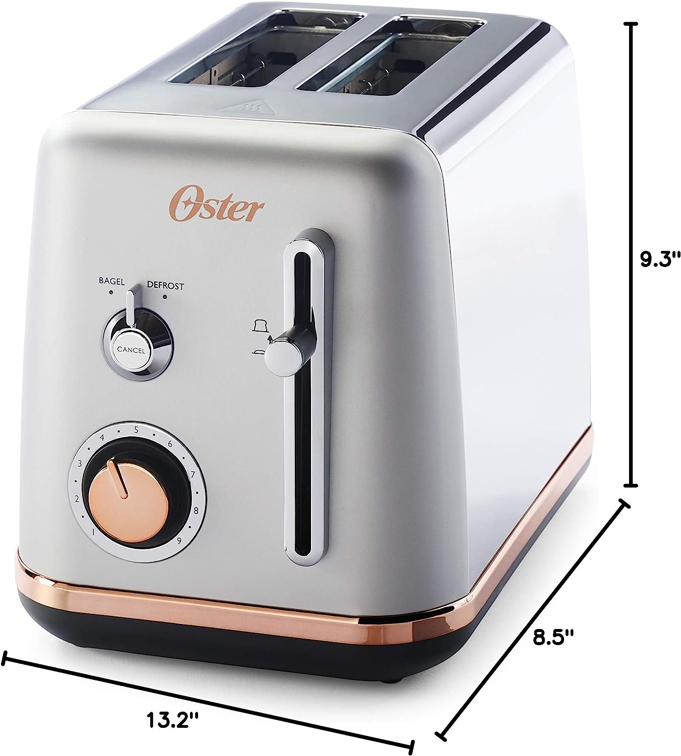 Oster 2097682 2 Slice Toaster Metropolitan Collection with Rose Gold Accents. GRAY