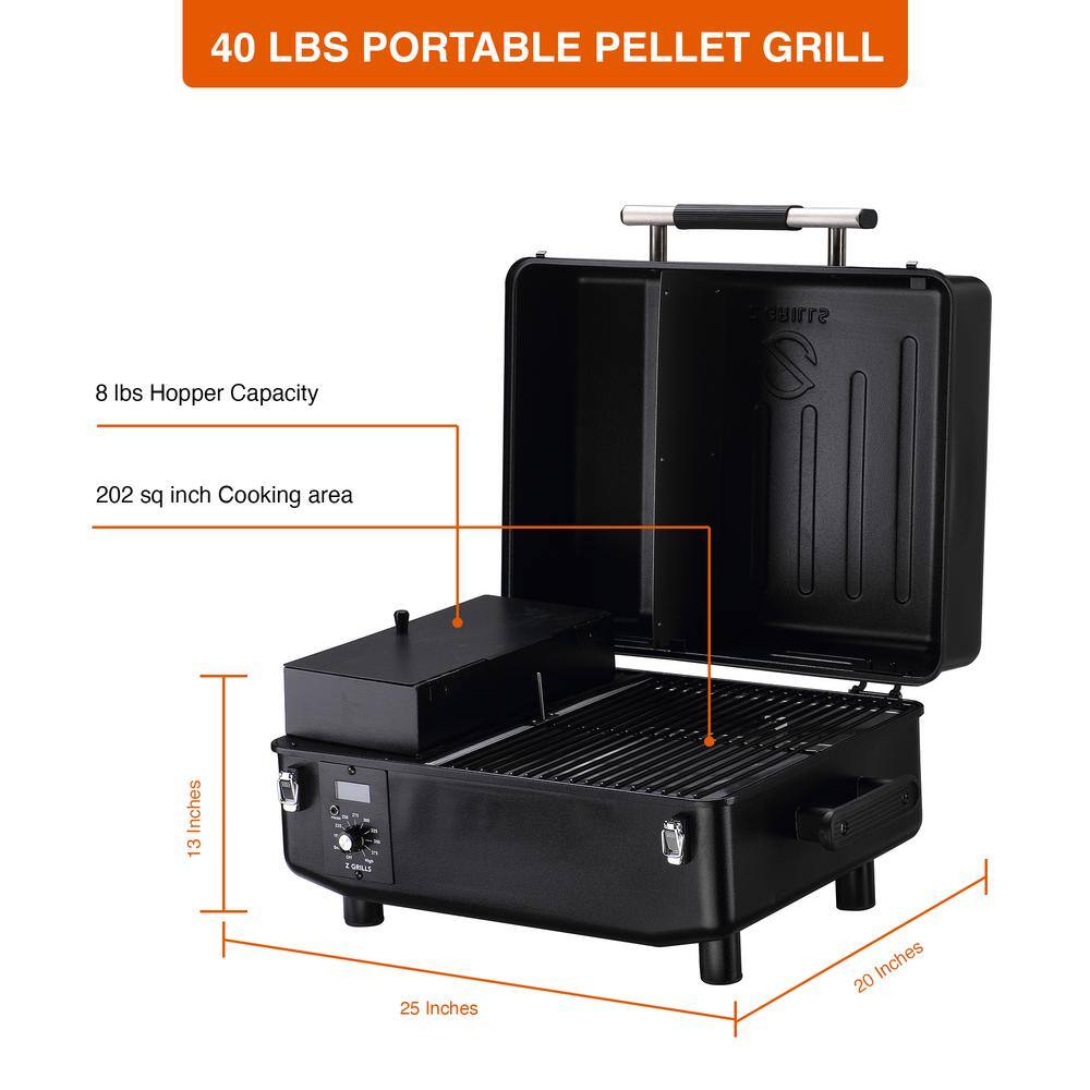 Z GRILLS ZPG 200A 202 sq. in. Portable Pellet Grill & Electric Smoker Camping BBQ Combo with Auto Temperature Control in Black