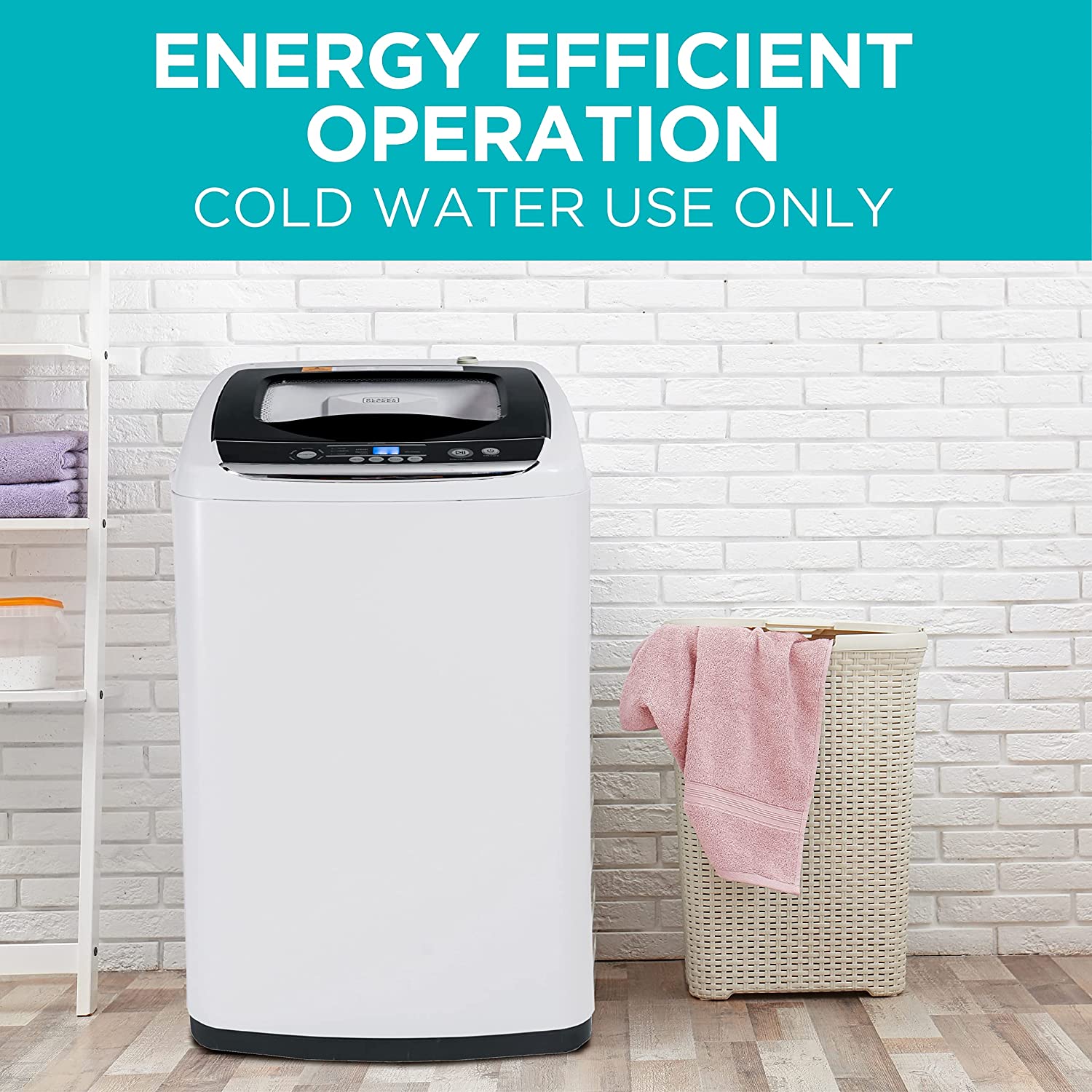BLACK+DECKER Small Portable Washer. Washing Machine for Household Use. Portable Washer 0.9 Cu. Ft. with 5 Cycles. Transparent Lid & LED Display