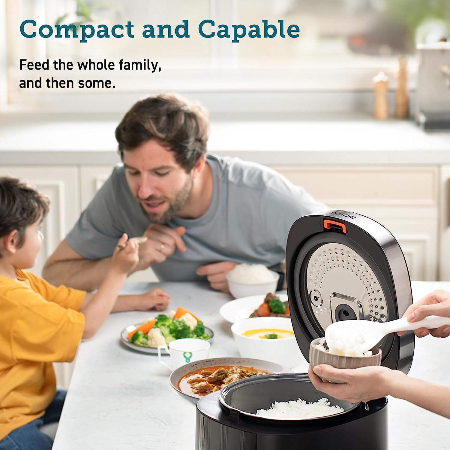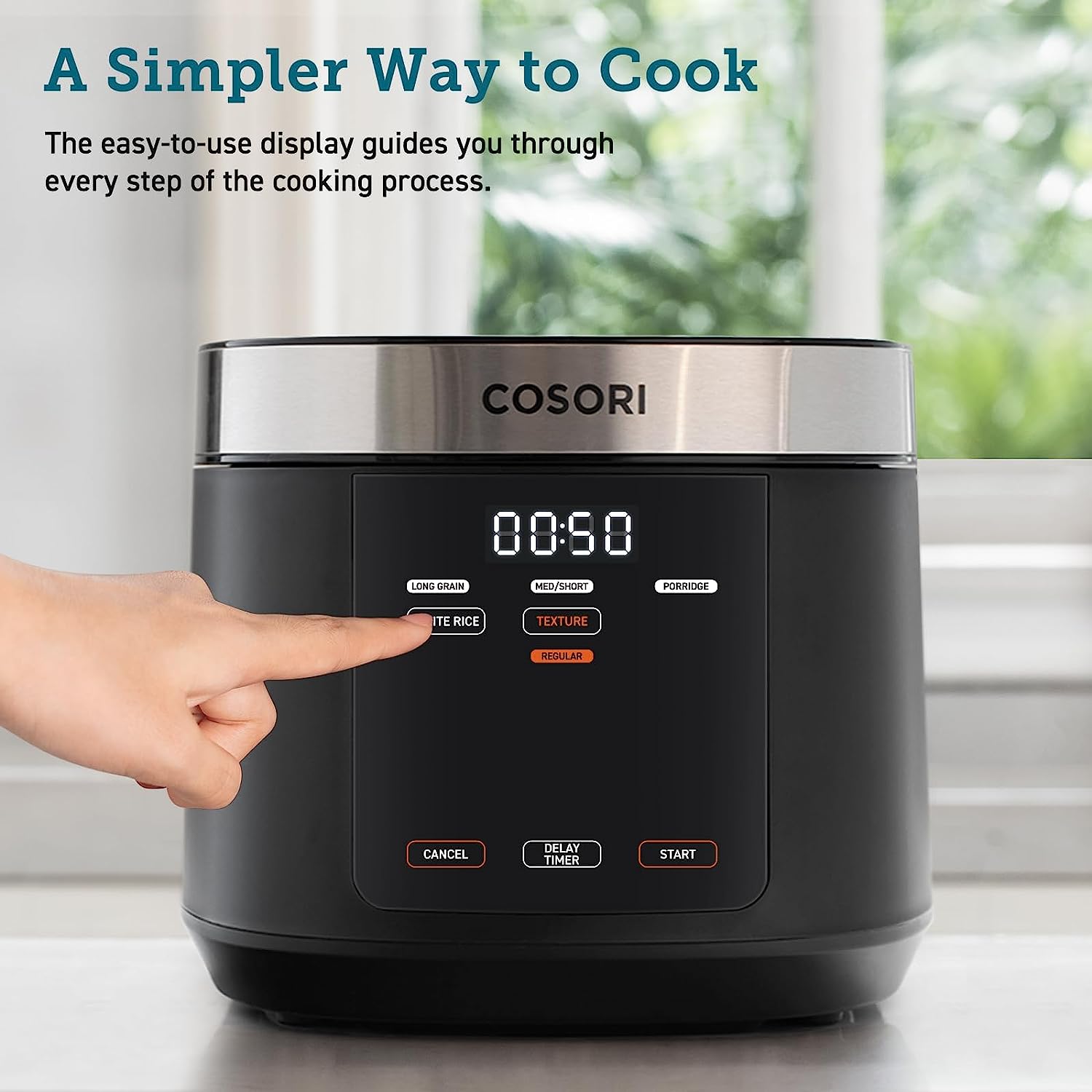 COSORI Rice Cooker Large Maker 10 Cup Uncooked 18 Functions. Japanese Style Fuzzy Logic Micom Technology. Texture Optional. 50 Recipes. Stainless Steel Steamer. Warmer. Timer. Olla Arrocera Electrica.Black