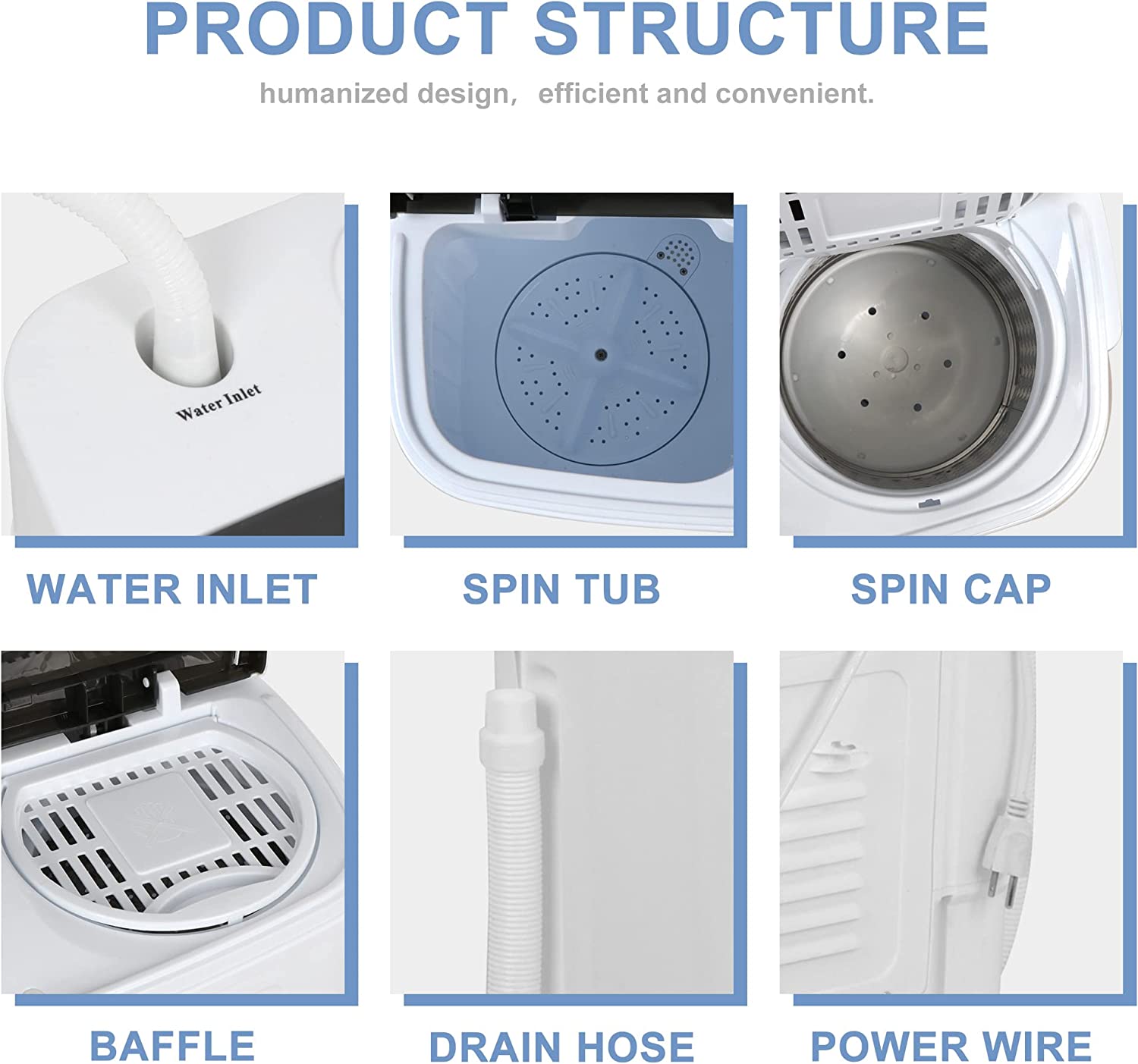 Giantex Portable Mini Compact Twin Tub Washing Machine 17.6lbs Washer Spain Spinner Portable Washing Machine. Blue+ White
