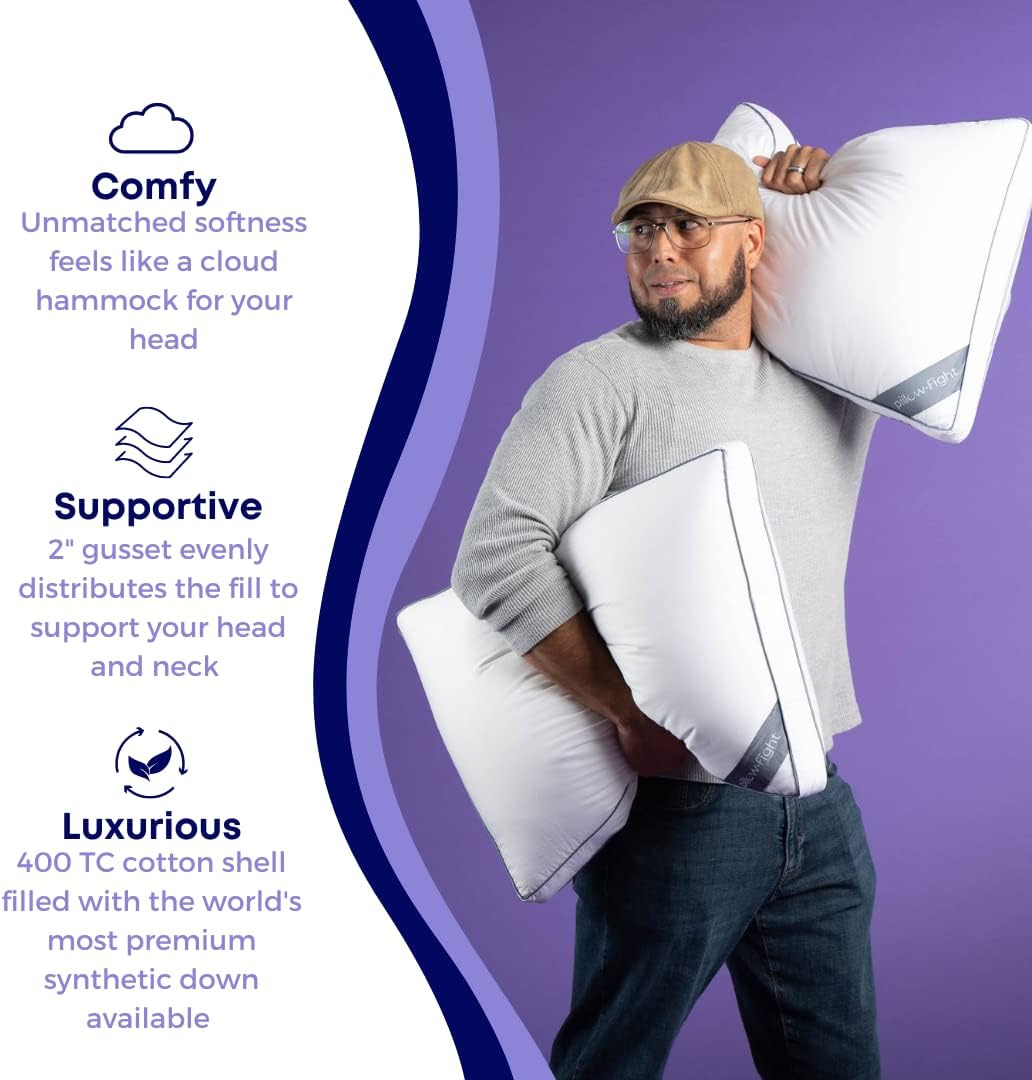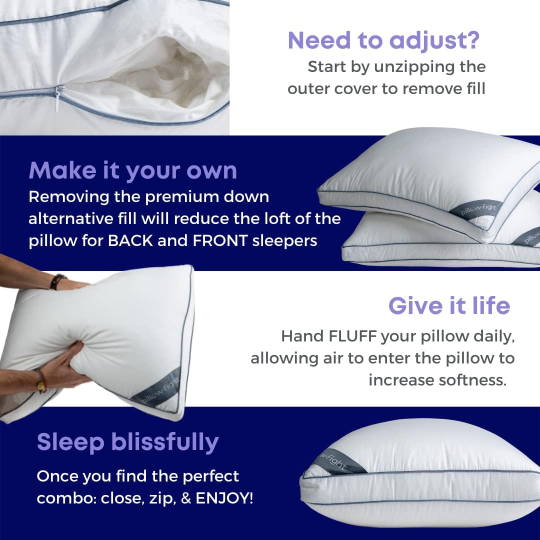 Pillow Fight Knockout Luxury. Adjustable Down Alternative Bed Pillows - Best Cooling Neck Pillow Good for Sleeping Back & Stomach Sleepers (King Size. Set of 2)