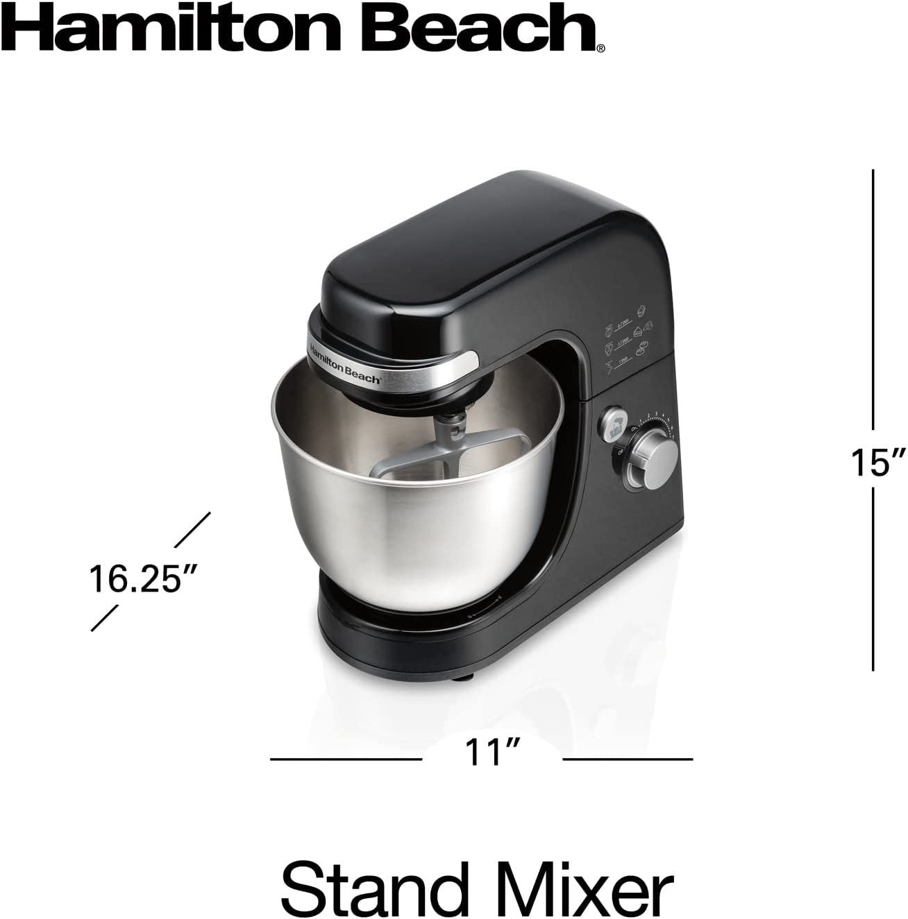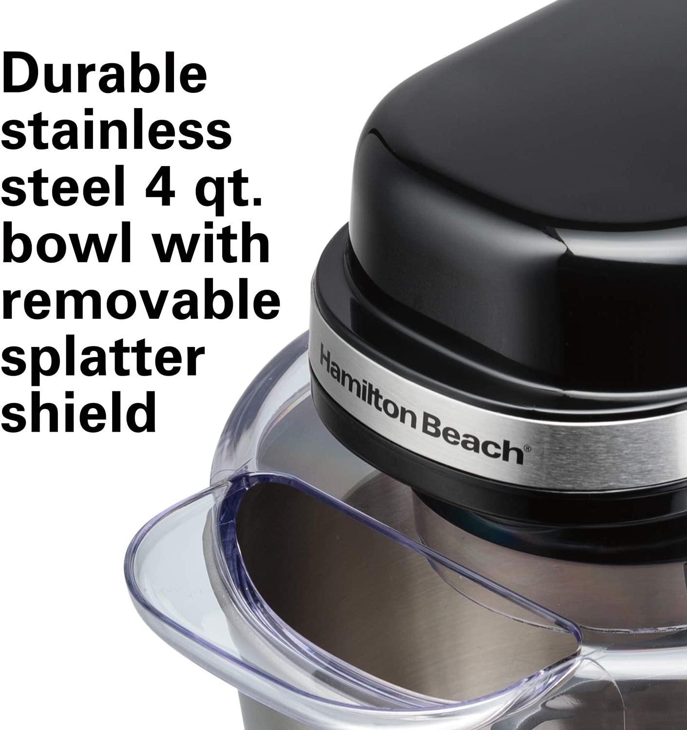 Hamilton Beach Electric Stand Mixer. 4 Quarts. Dough Hook. Flat Beater Attachments. Splash Guard 7 Speeds with Whisk. Black