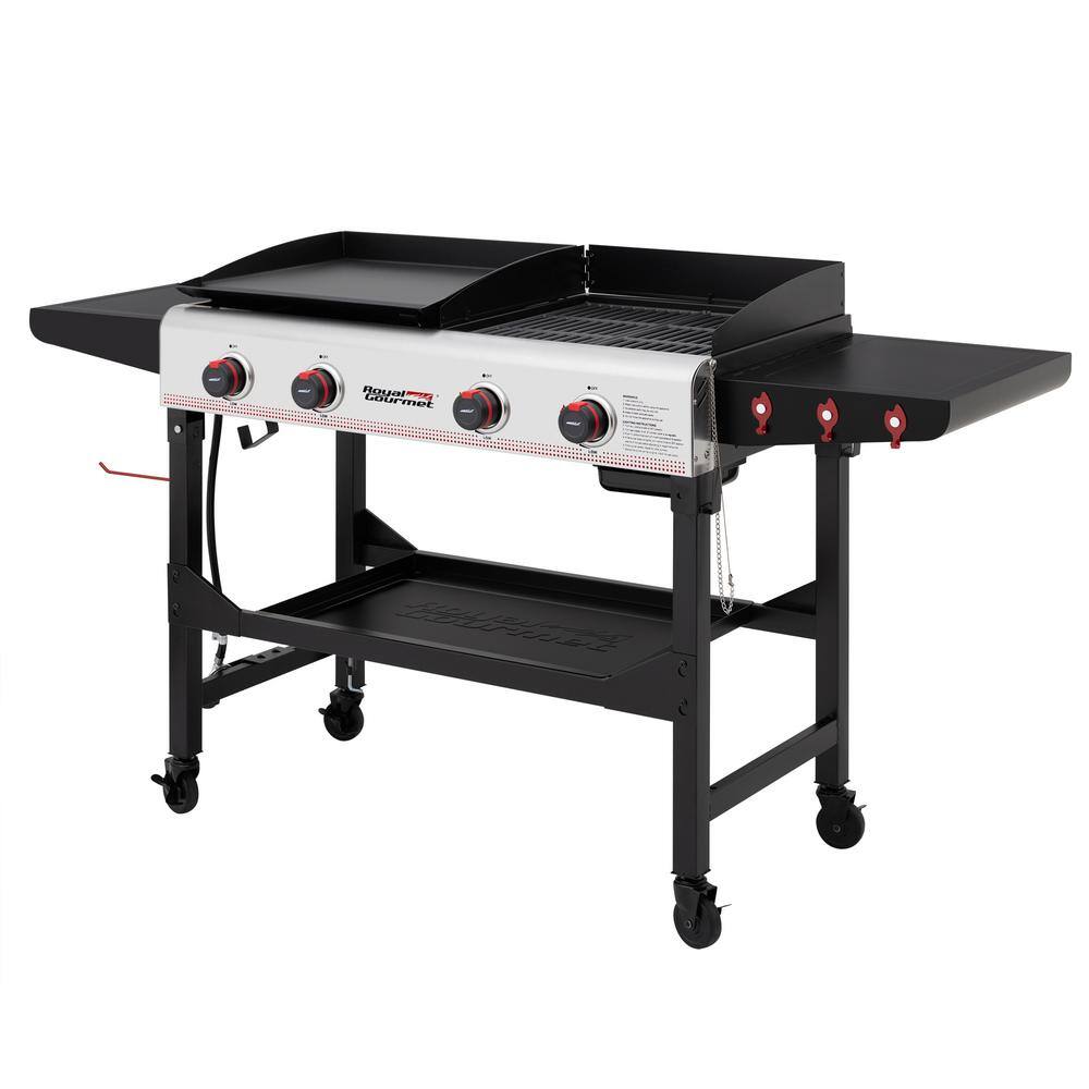 Royal Gourmet GD403 4-Burner 48.000 BTU Portable Flat Top Gas Grill and Griddle Combo Grill in Black with Folding Legs for Outdoor Cooking