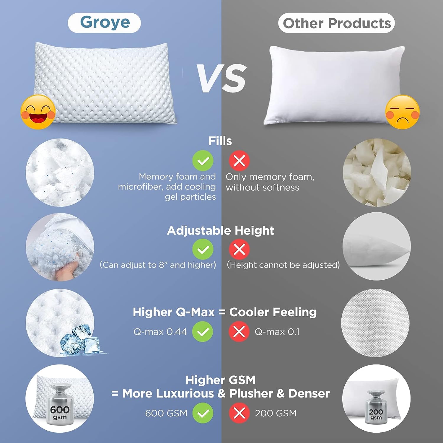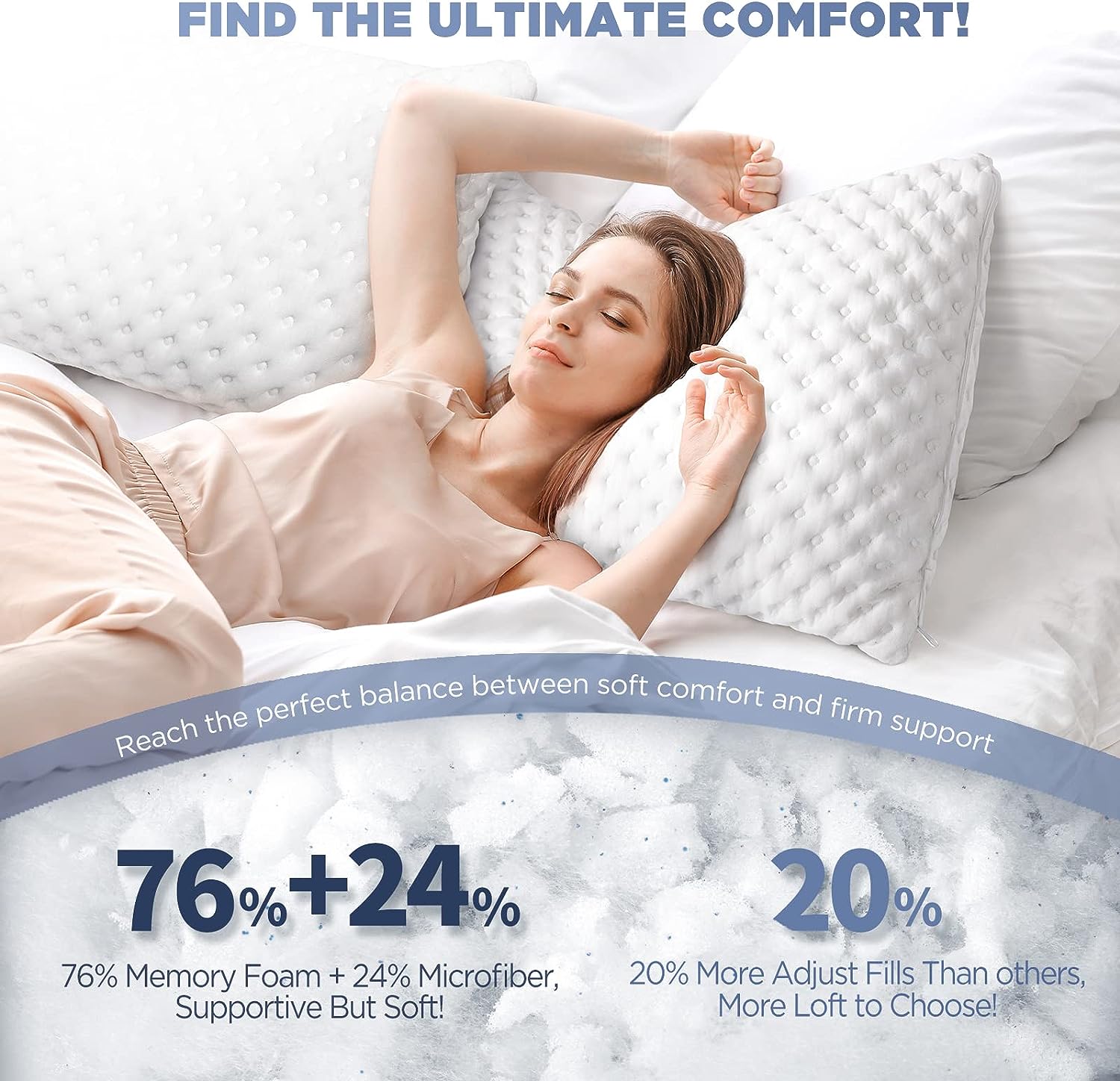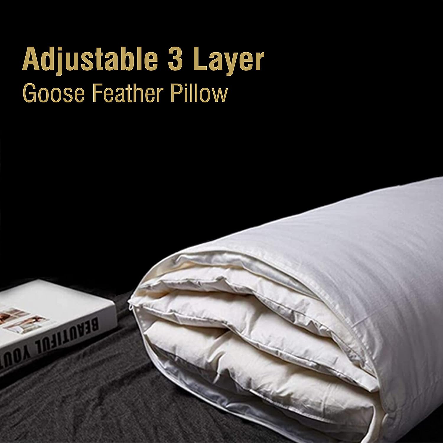 AIKOFUL Adjustable Layer Pillow for Sleeping.Premium Goose Feather Pillow with 100% Cotton Zipper Cover.Queen Size