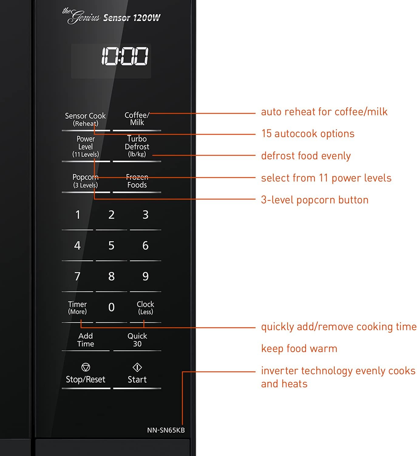 Panasonic NN-SN65KB Microwave Oven with Inverter Technology 1200W. 1.2 cu.ft. Small Genius Sensor One-Touch Cooking. Popcorn Button. Turbo Defrost-NN-SN65KB (Black)