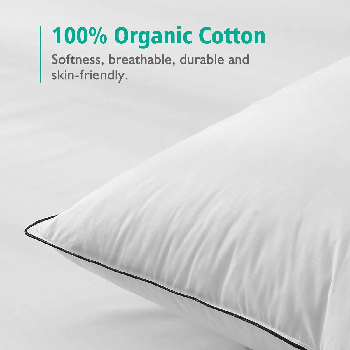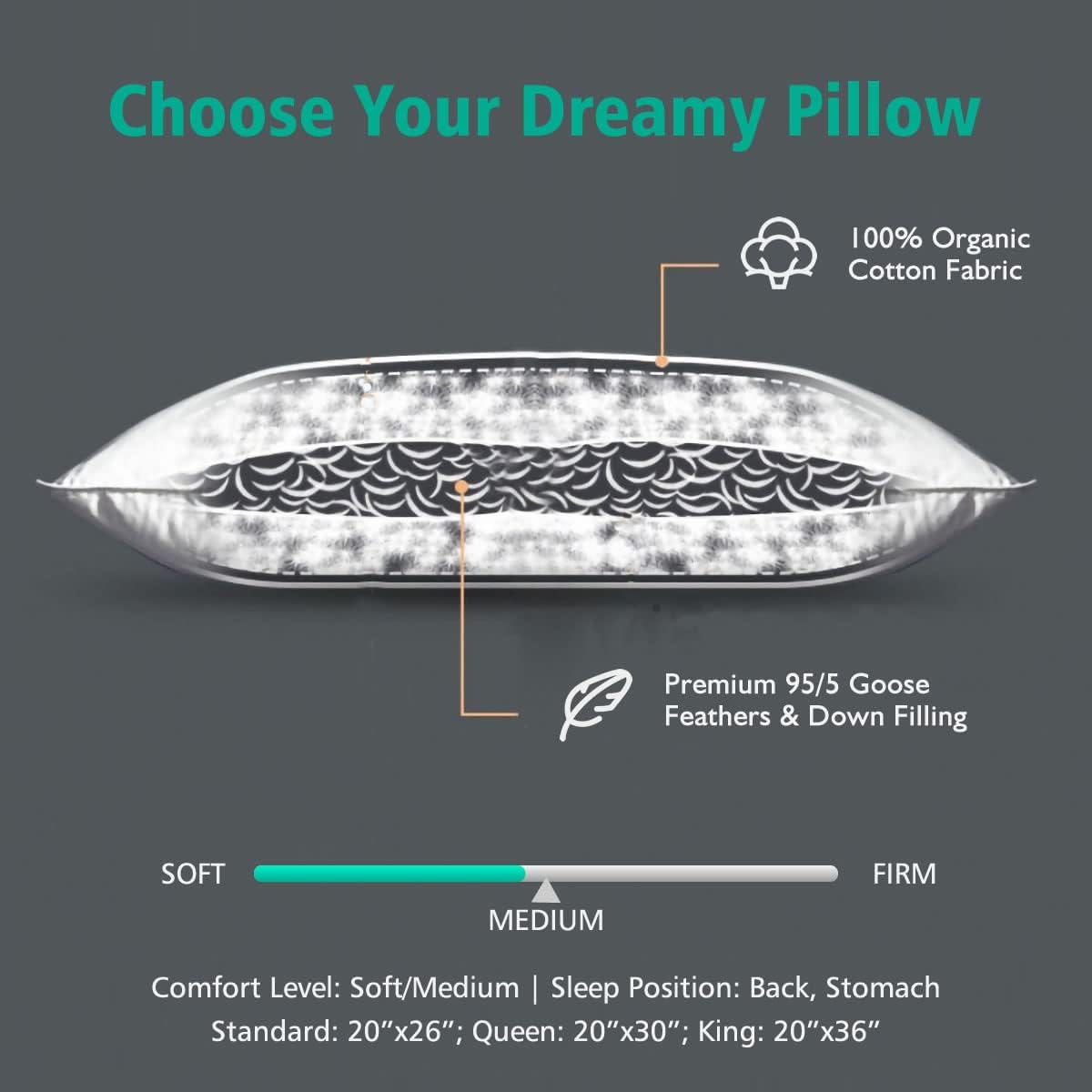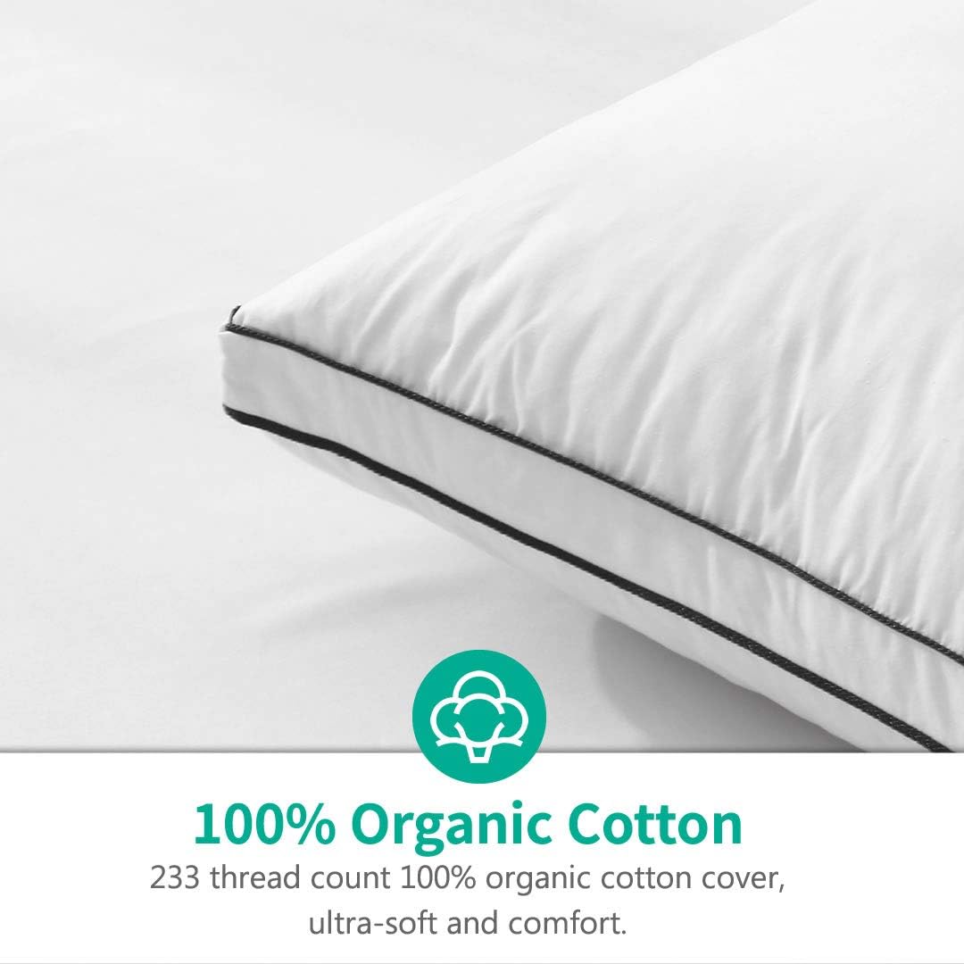 APSMILE Goose Feather Down Pillows -Set of 2 Soft Bed Pillows for Sleeping 100% Organic Cotton Queen Size Hotel-Quality Pillows Insert for Stomach/Back Sleepers