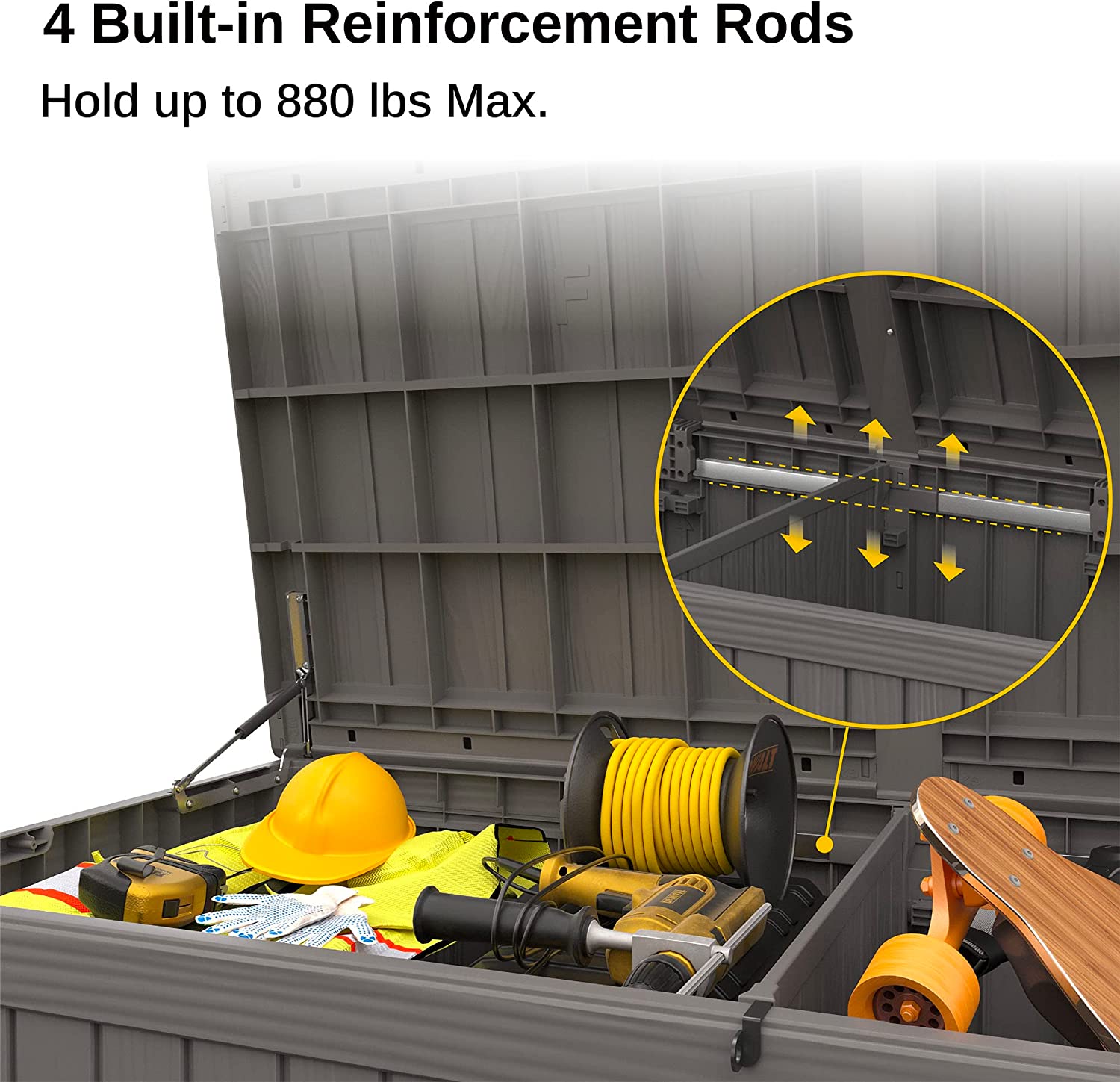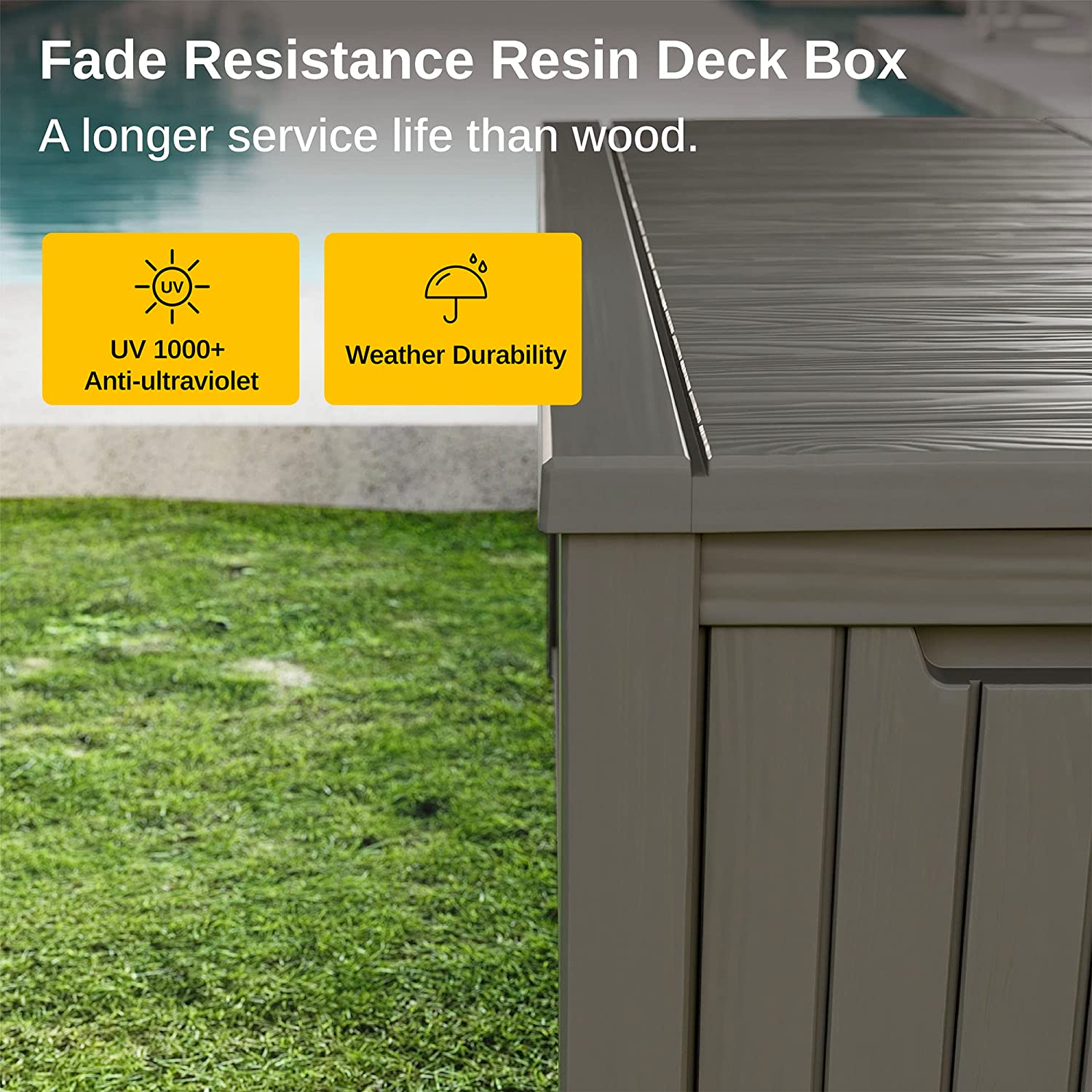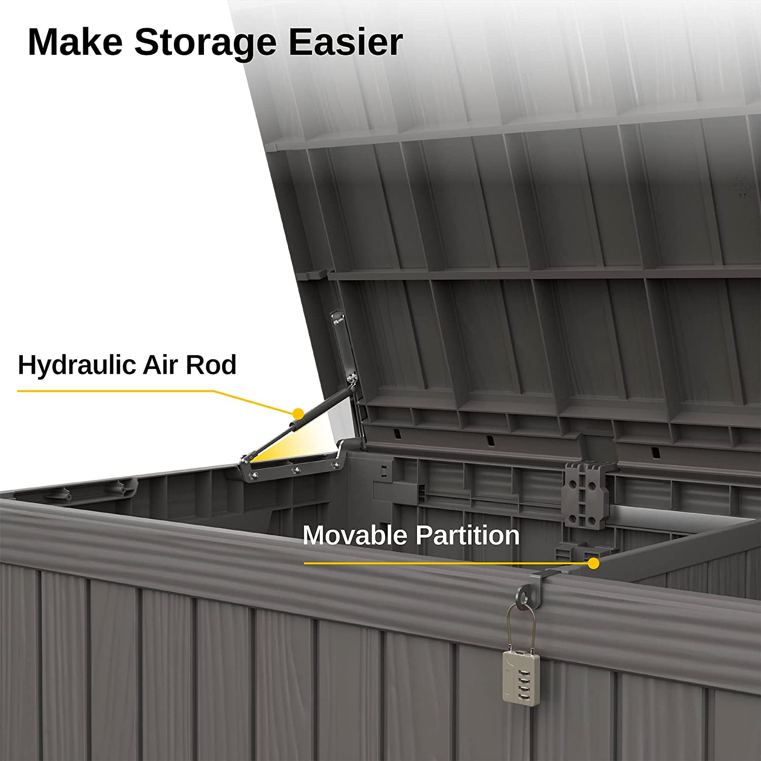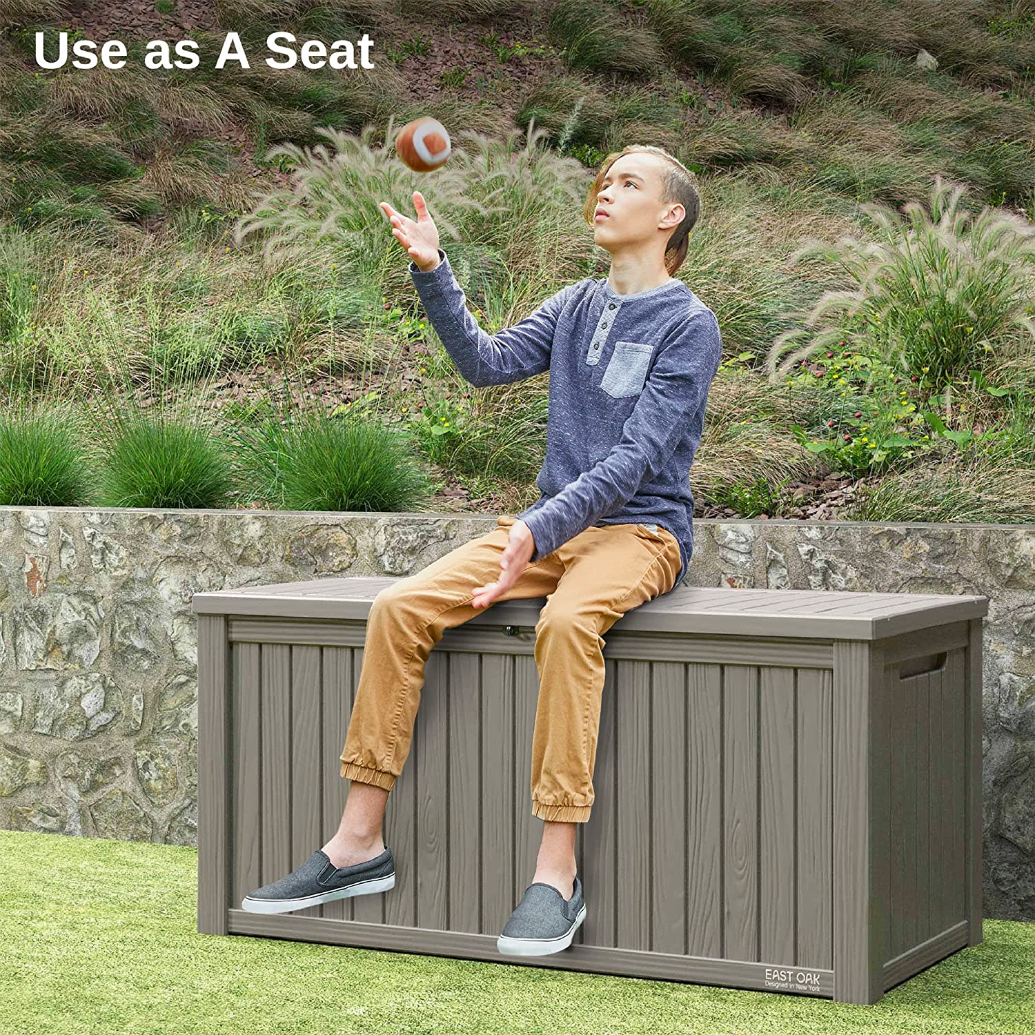 EAST OAK Deck Box. 31 Gallon Indoor and Outdoor Storage Box with Padlock for Patio Cushions. Outdoor Toys. Gardening Tools. Sports Equipment. Waterproof and UV Resistant Resin. Grey