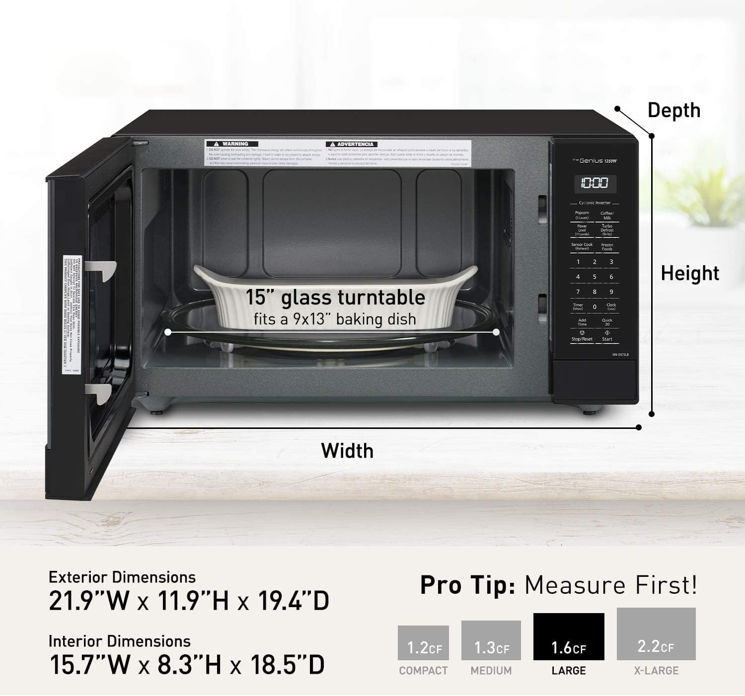 Panasonic NN-SN75LB cu.ft Cyclonic Inverter Countertop Microwave Oven 1250Watt Power with Genius Sensor Cooking. 1.6 cft. Black