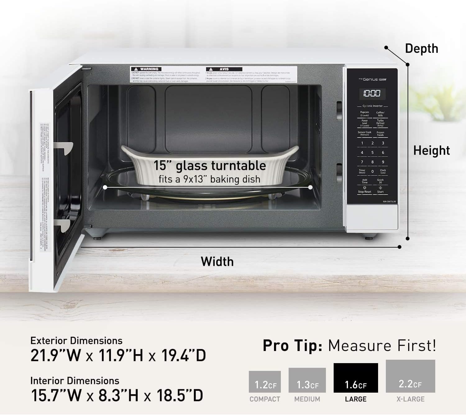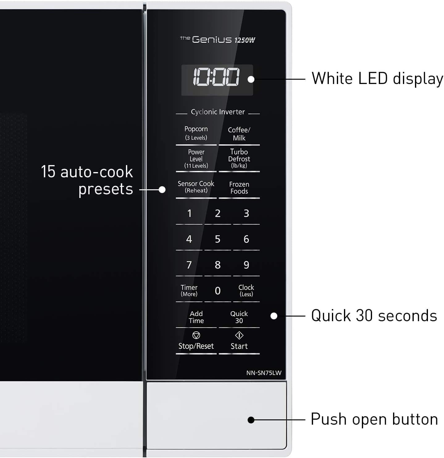 Panasonic NN-SN75LW cu.ft Cyclonic Inverter Countertop Microwave Oven 1250Watt Power with Genius Sensor Cooking. 1.6 cft. White