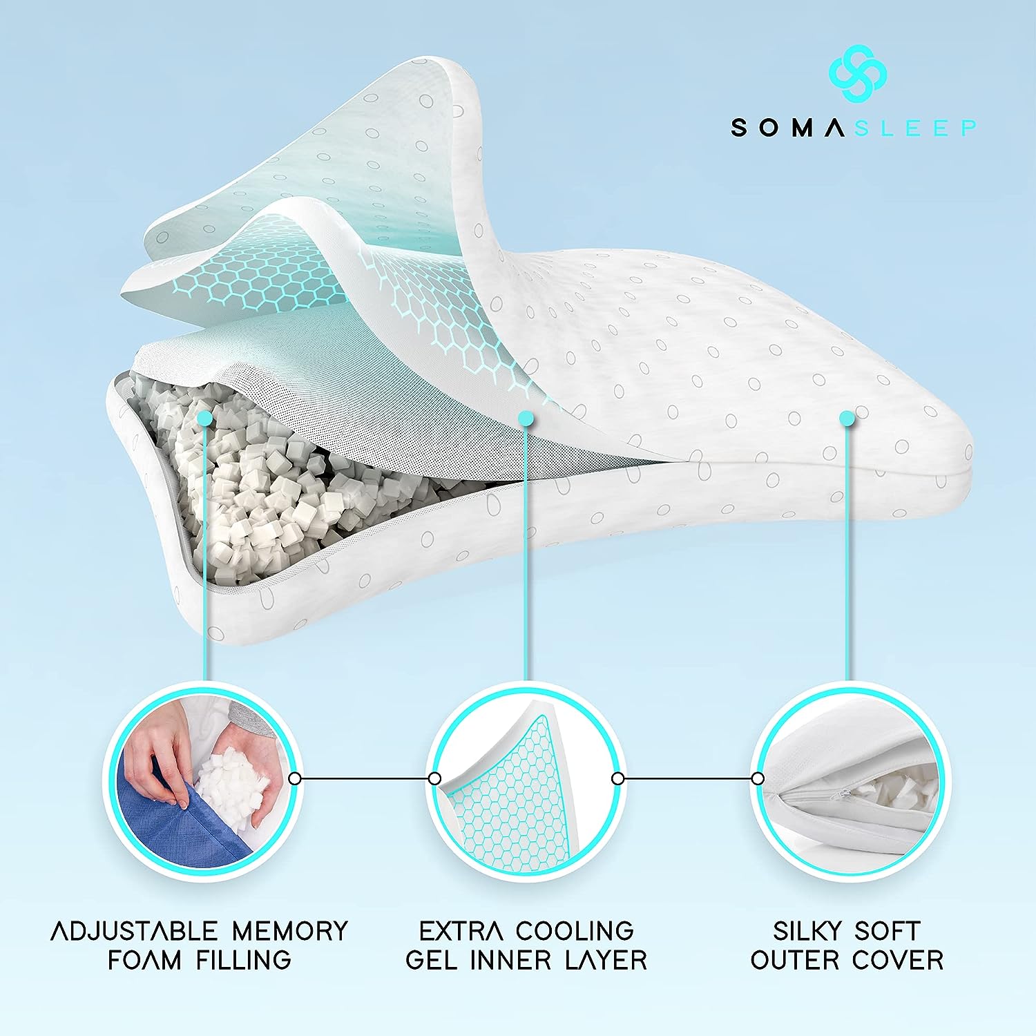 Cooling Pillow for Hot Sleepers - Best Curved Side Sleeper Bed Pillow - Anti Wrinkle Cool Gel Pillow - Gel Cooling Memory Foam Pillow for Neck. Back and Shoulder Pain Relief and Sleeping - Queen White