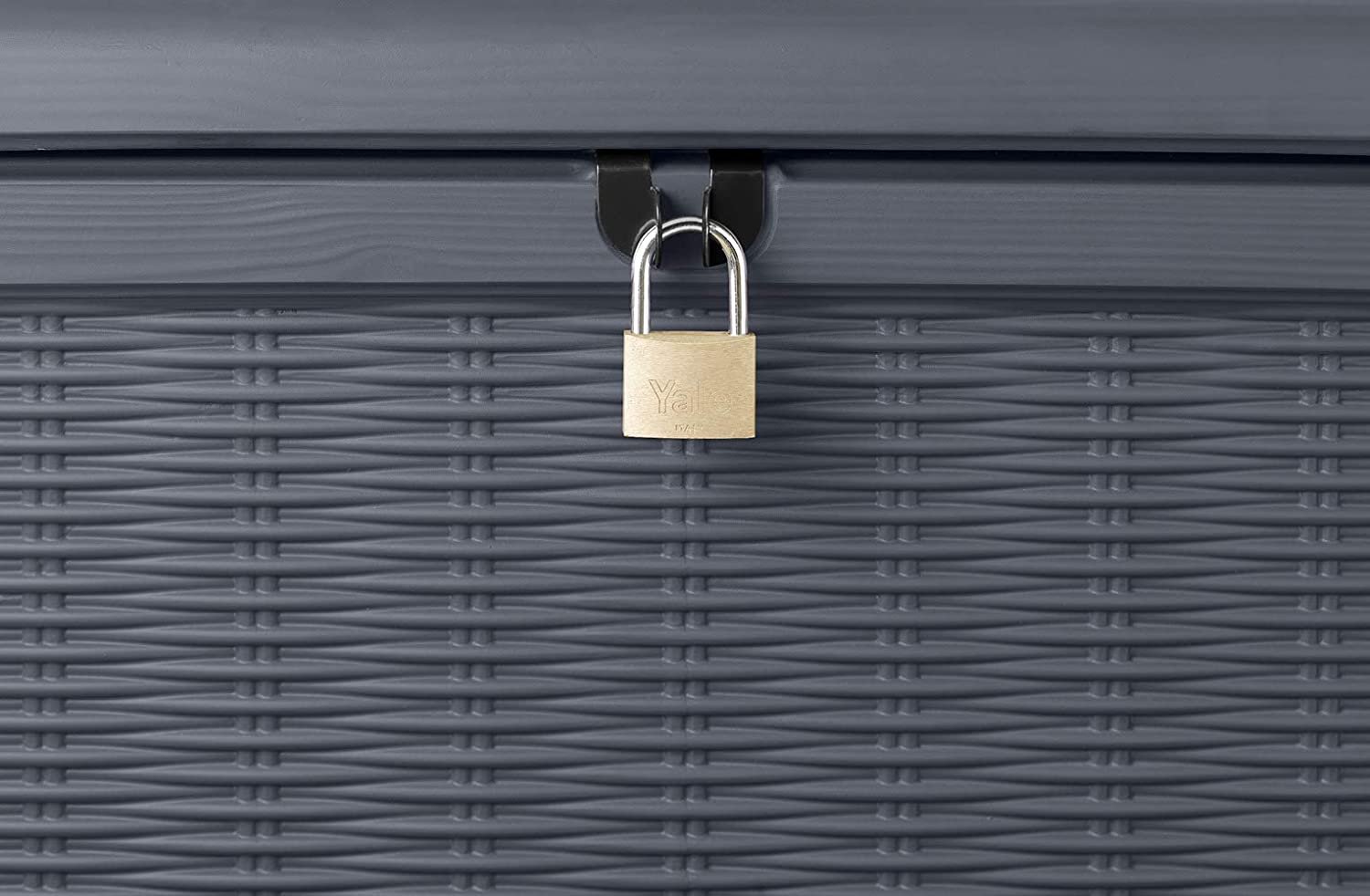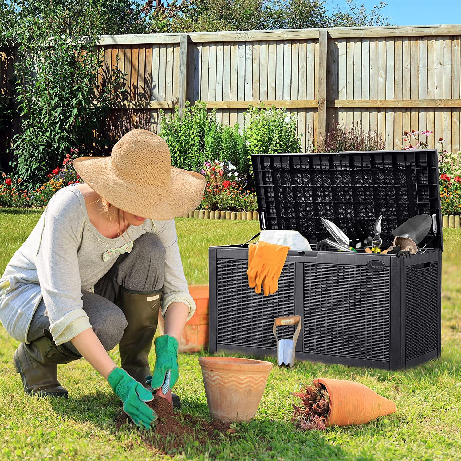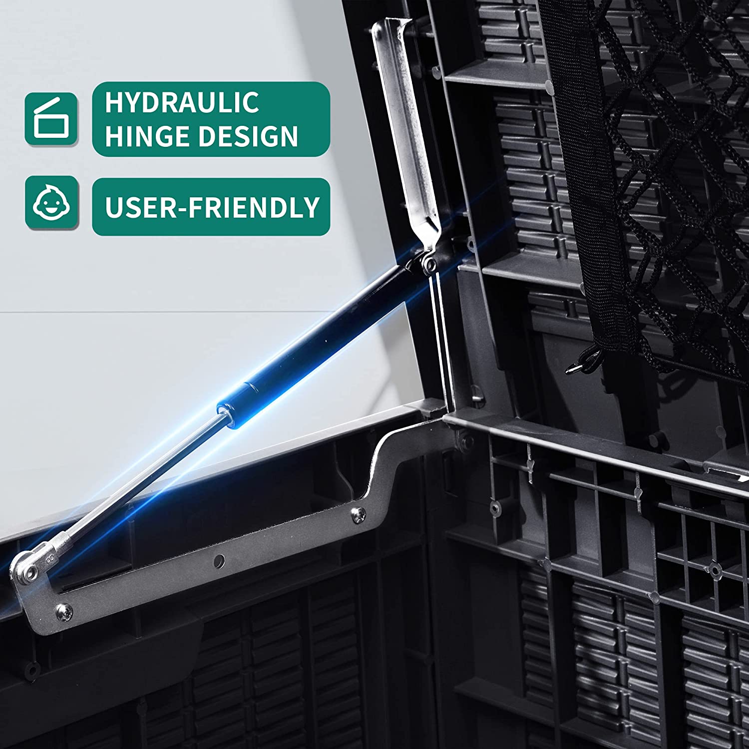 YITAHOME 100 Gallon Large Deck Box w/Storage Net. Resin Outdoor Storage Boxes. Waterproof Patio Cushion Storage Bench for Patio Furniture. Pool Supplies. Garden Tools- Rattan.Lockable (Black)