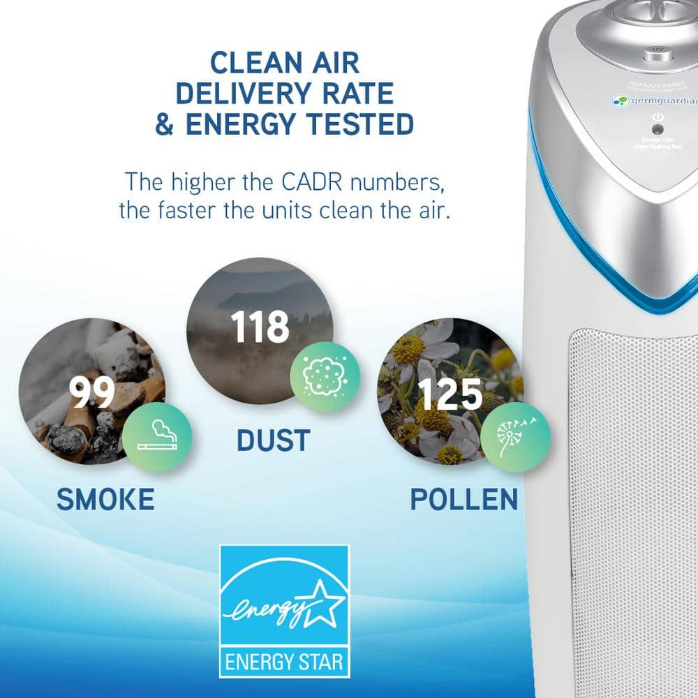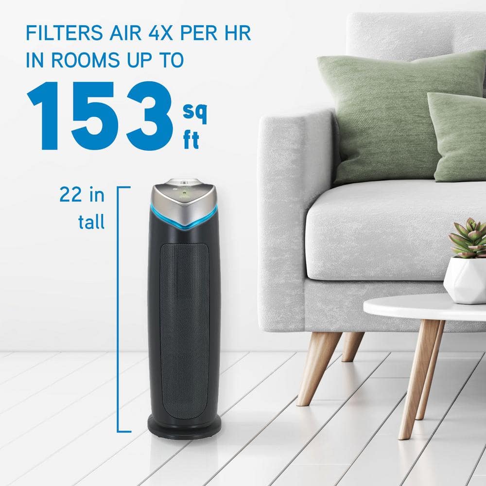 GermGuardian AC4825DLX 22 in. 4-in-1 Air Purifier with True HEPA filter for Medium Rooms up to 153 Sq Ft. Black (Model #AC4825DLX)
