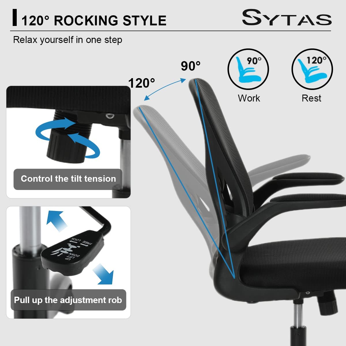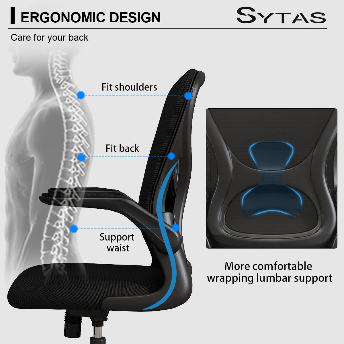 Sytas Home Office Chair Ergonomic. Mesh Desk Chair Lumbar Support. Ergonomic Computer Chair Adjustable Armrest. Black