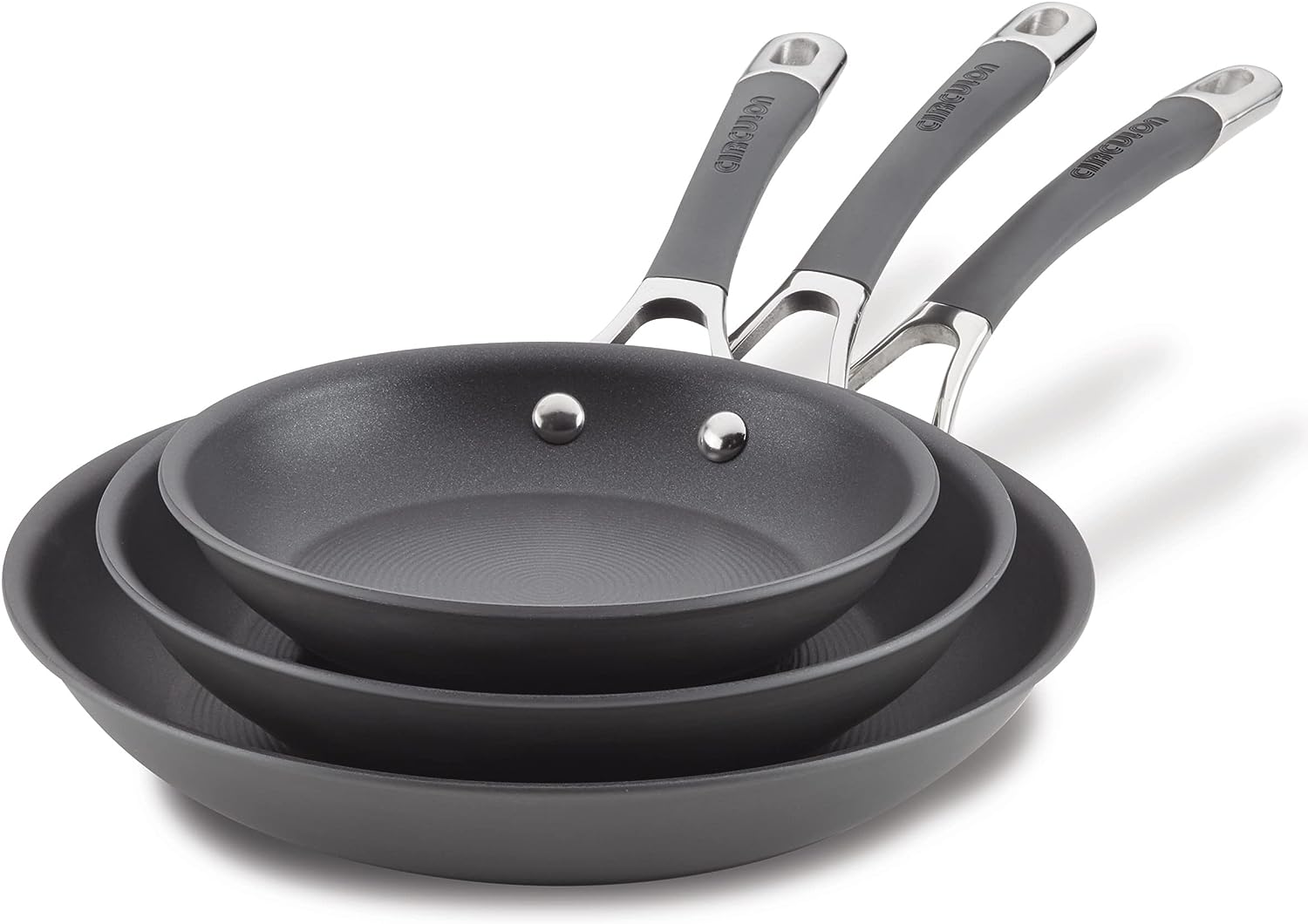 Circulon Radiance Hard Anodized Nonstick Frying / Fry Pan Set / Skillet Set - 8.5 Inch. 10 Inch. and 12.25 Inch . Gray