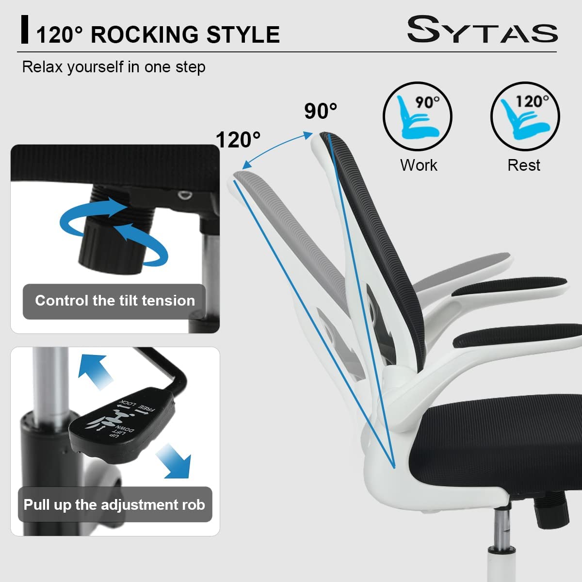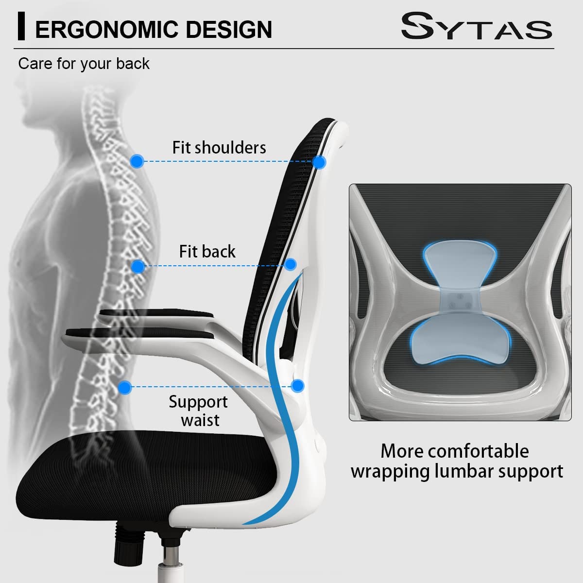 Sytas Home Office Chair Ergonomic. Mesh Desk Chair Lumbar Support. Ergonomic Computer Chair Adjustable Armrest. White