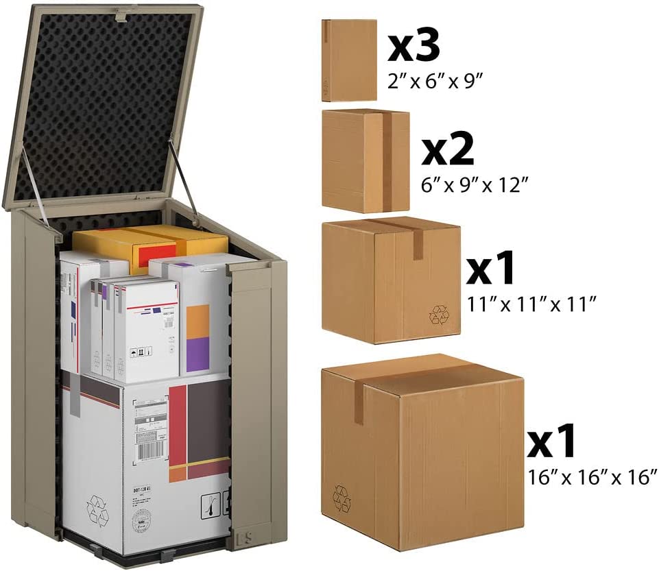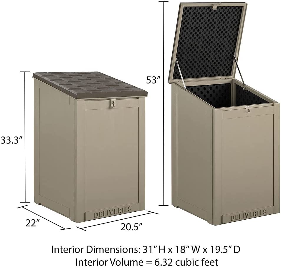 Cosco Outdoor LIving BoxGuard®. Large Lockable Package Delivery and Storage Box. 6.3 cubic feet. Tan