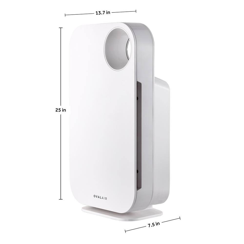 OVAL AIR AIR1000A 3-Stage 5-in-1 Air Purifier for Rooms Upto 600 sq. ft. Reduces Allergies. Asthma. Pets. Odor. Smoke. White
