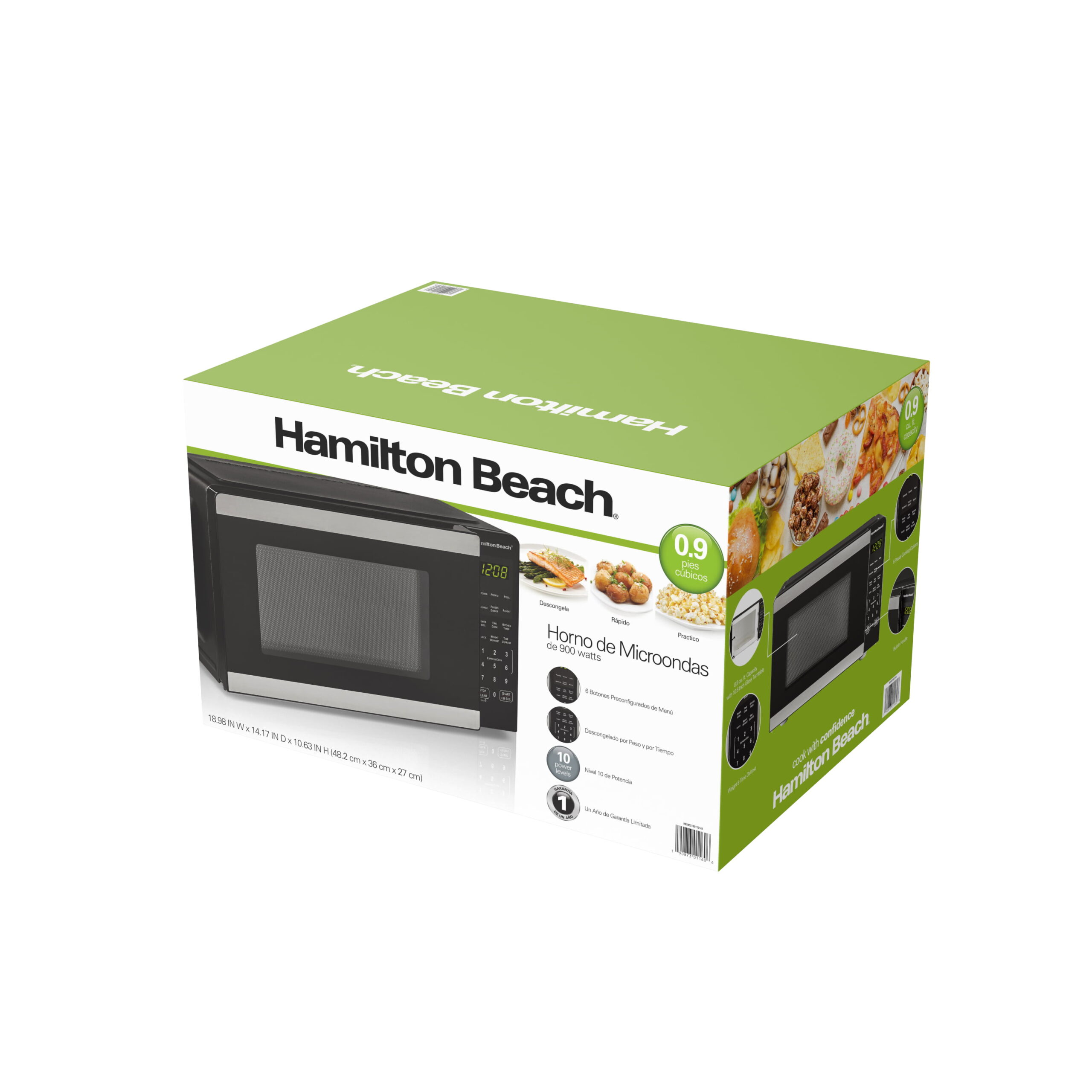 Hamilton Beach 0.9 Cu ft Countertop Microwave Oven. 900 Watts. Stainless Steel. New