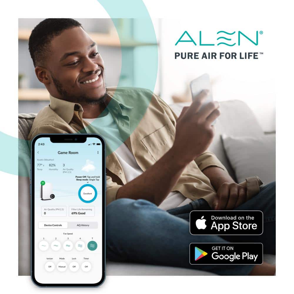 Alen BreatheSmart-45i-Pure-White BreatheSmart 45i Air Purifier with Pure. True HEPA Filter for Allergens. Dust. Mold. and Germs - 800 SqFt