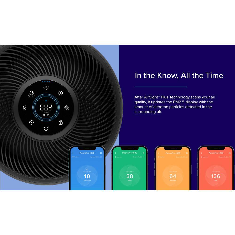 LEVOIT HEAPAPLVSUS0111Y PlasmaPro 400S Smart 403 sq.ft. True HEPA Air Purifier in Black