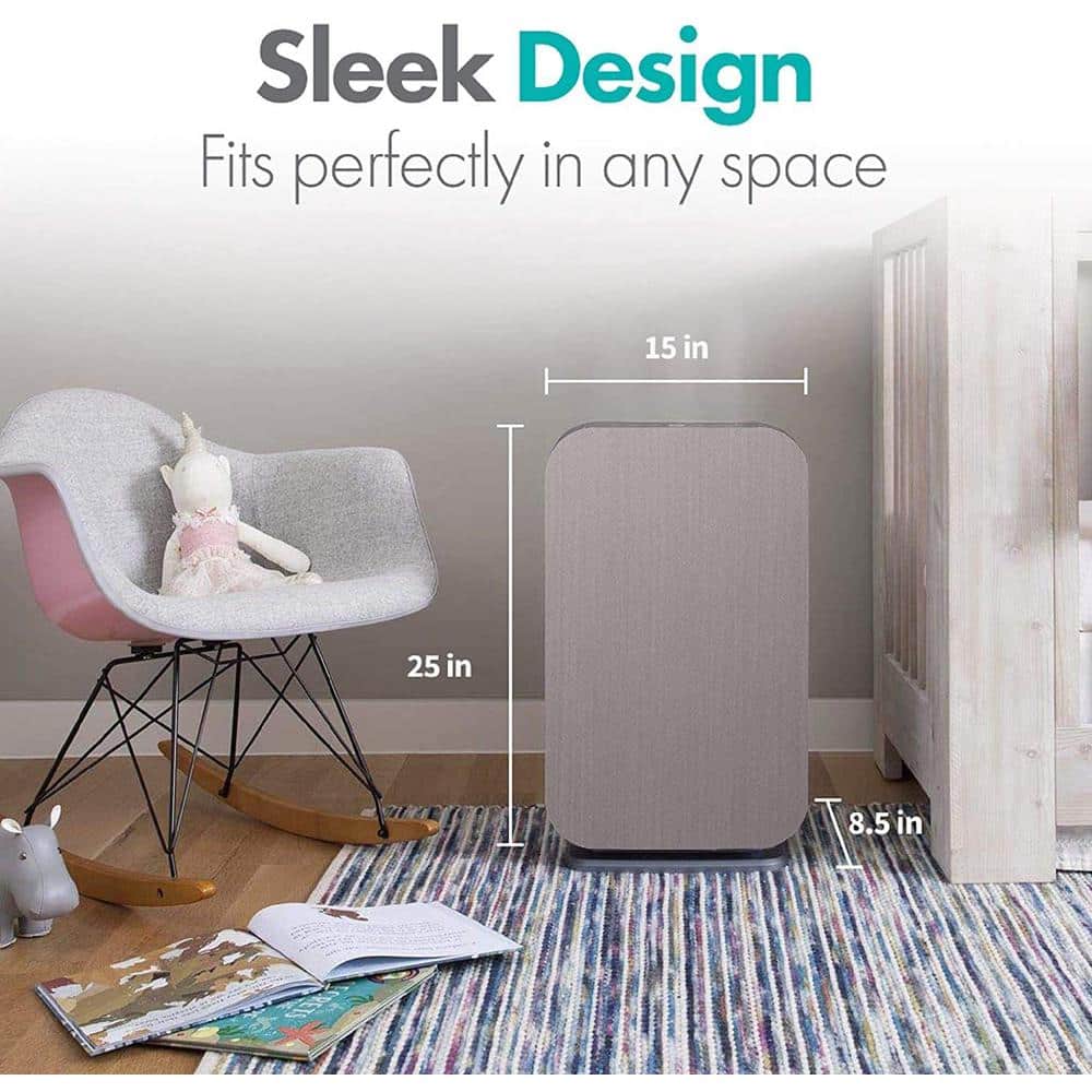 OVAL AIR AIR1000B 3-Stage 5-in-1 Air Purifier for Rooms Upto 600 sq. ft. Reduces Allergies. Asthma. Pets. Odor. Smoke. Silver