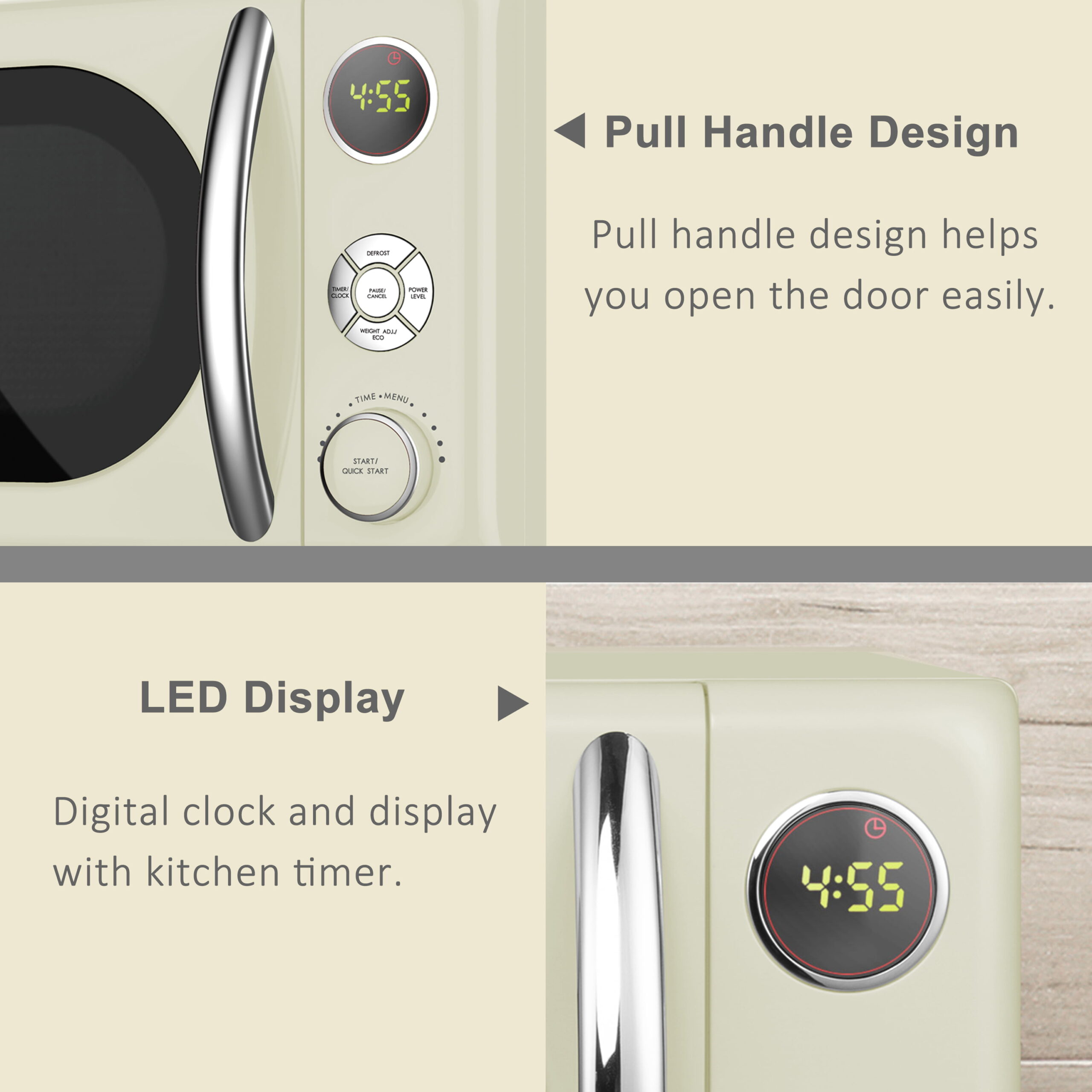 Galanz 0.7 cu. ft. Retro Countertop Microwave Oven. 700 Watts. Cream