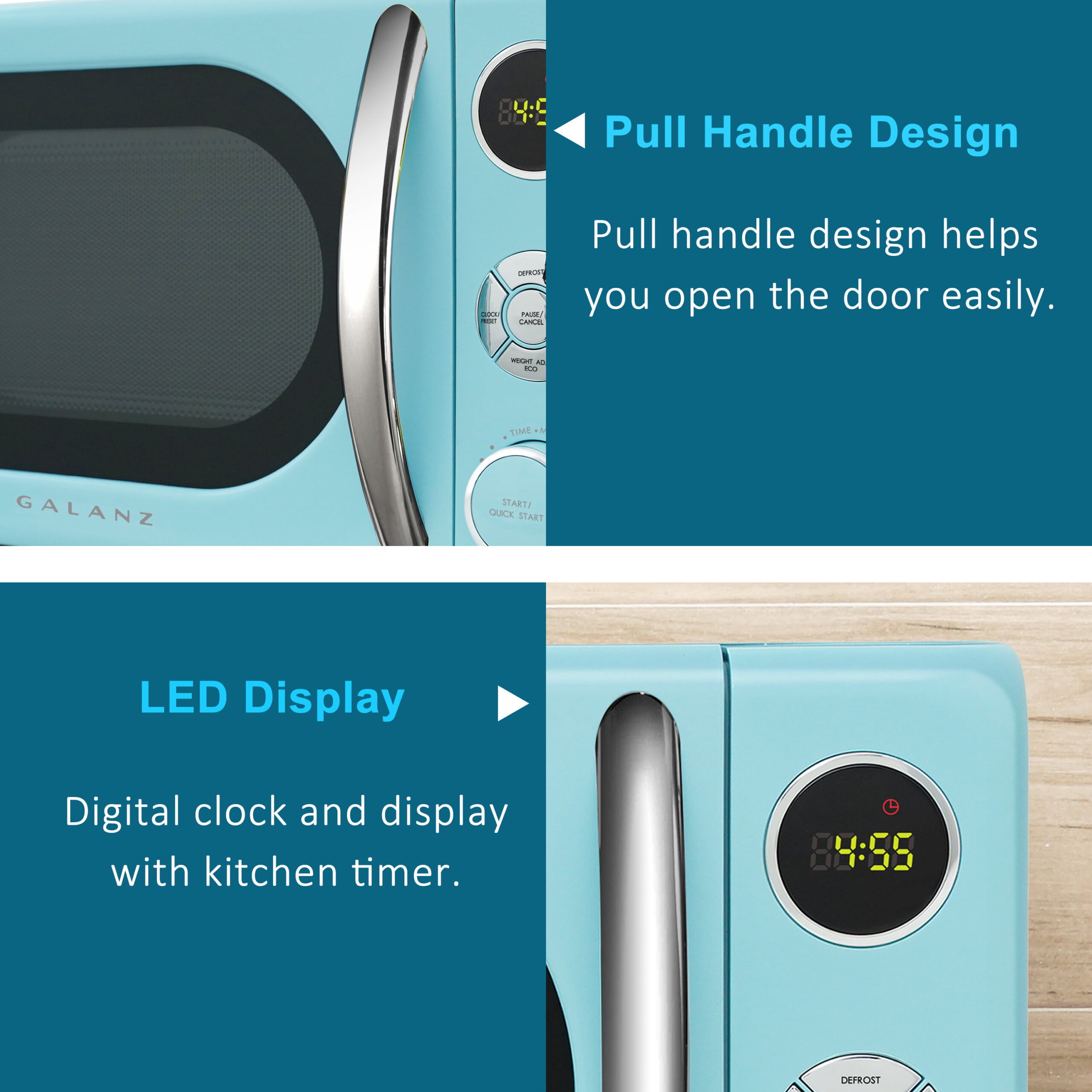 Galanz 0.7 cu. ft. Retro Countertop Microwave Oven. 700 Watts. Blue