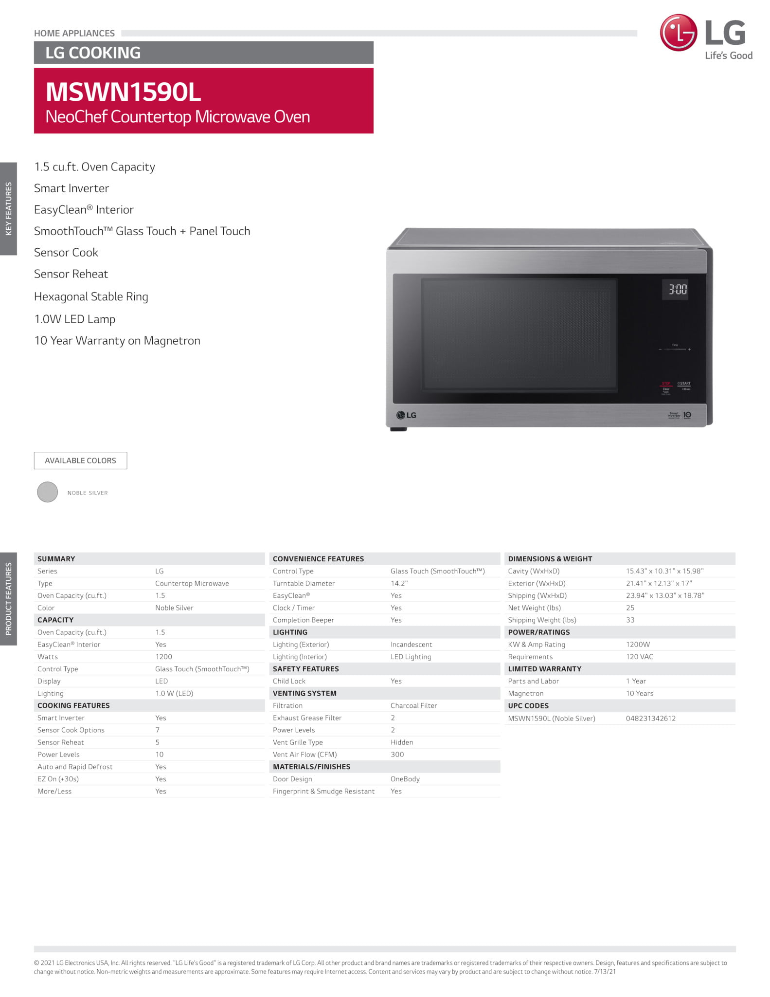 LG Neo Chef 1.5 cu. ft. Countertop Microwave Oven. 1200 Watts. Stainless Steel