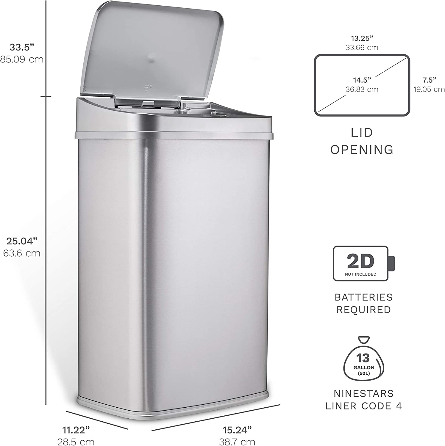 NINESTARS DZT-50-28SL Original Touchless Automatic Motion Sensor Trach Can. 13 Gal SL. Silver Trim