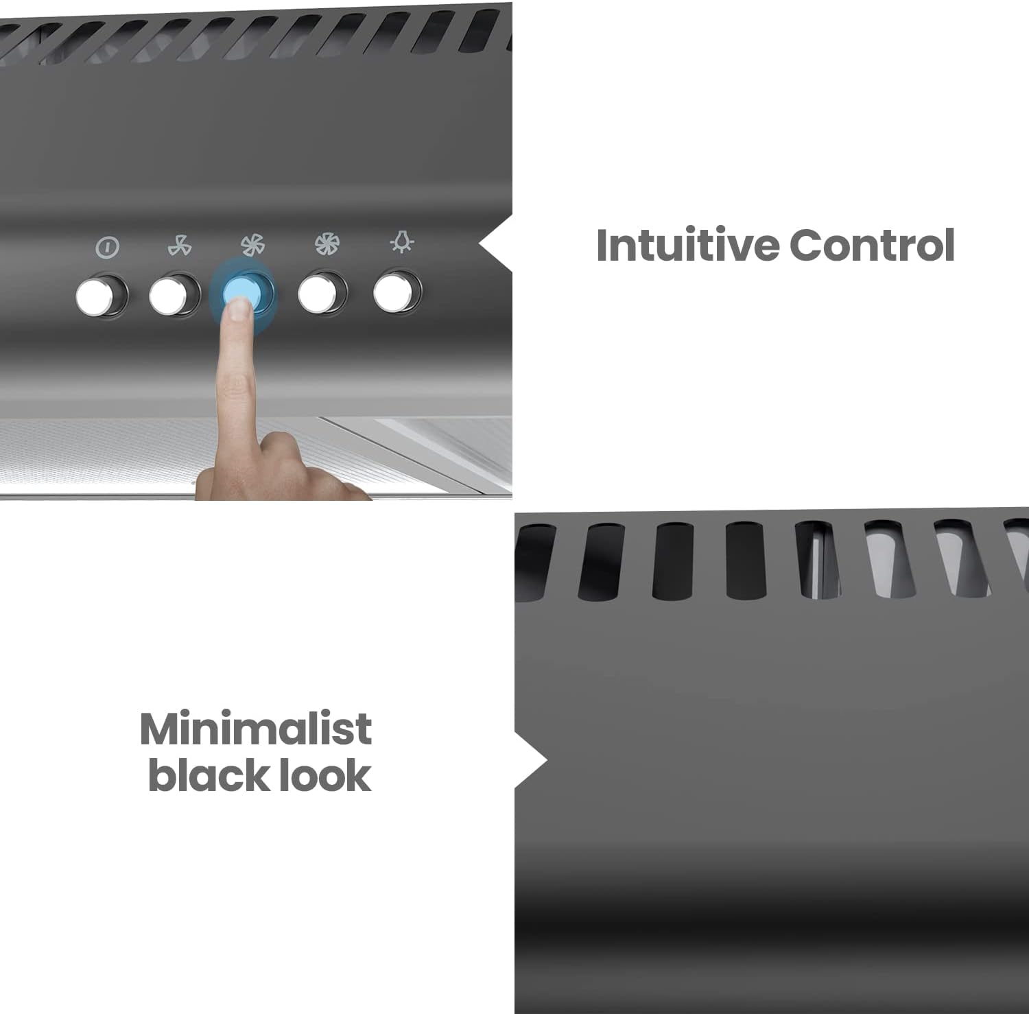 Comfee- Range Hood 30 inch. Under Cabinet Ducted/Ductless Convertible Slim Vent Hood. Durable Stainless Steel Kitchen Stove Hood. 3 Speed Exhaust Fan and 2 LED Lights Range Hood (Black)