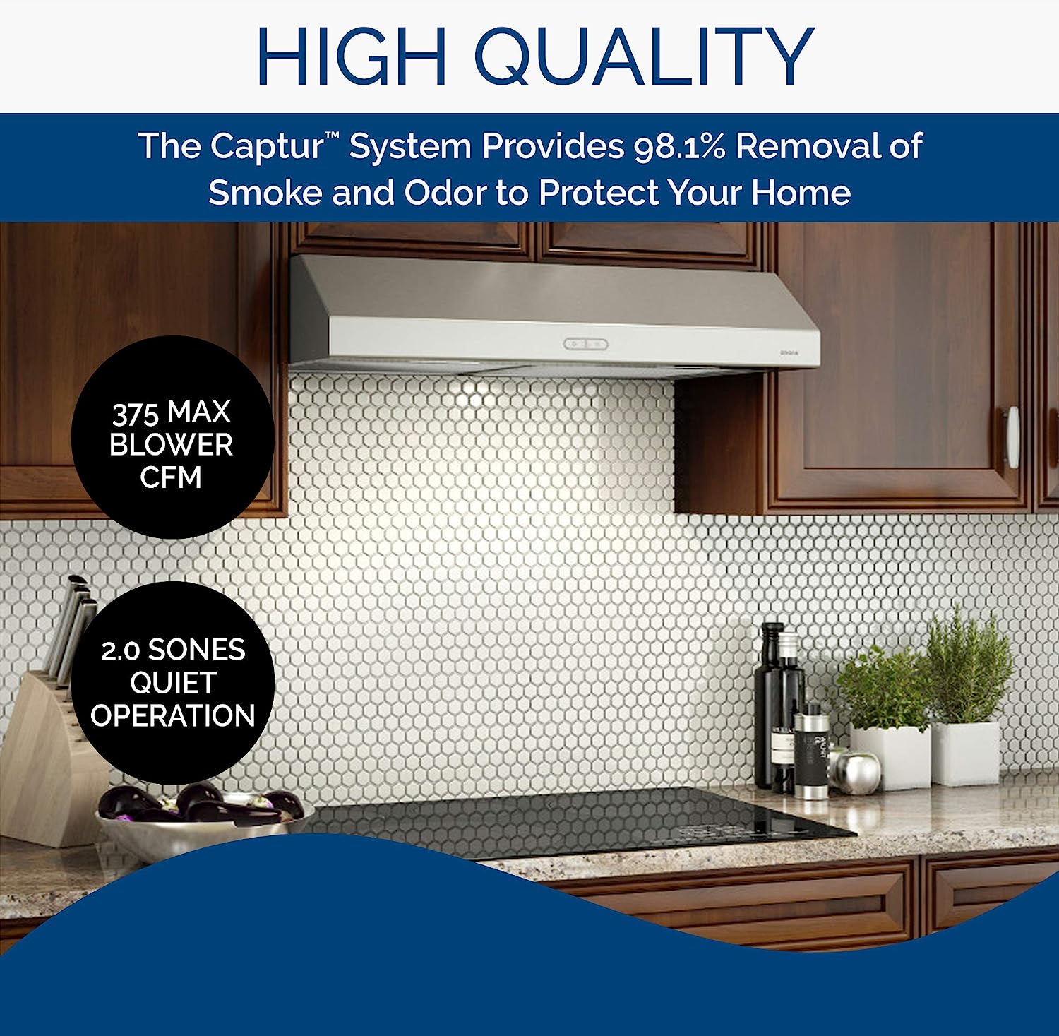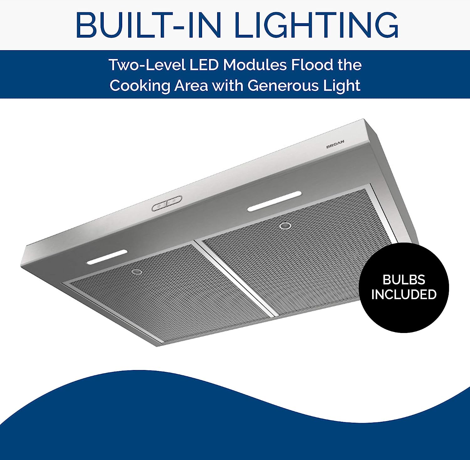 Broan- NuTone BCDF130SS Glacier Convertible Range Hood Light Exhaust Fan for Under Cabinet Stainless Steel. 375 Max Blower CFM. 30-Inch