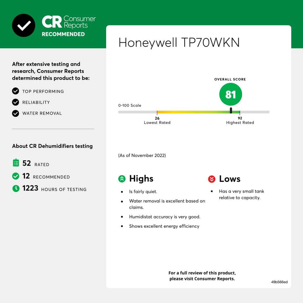 Honeywell TP70WK ENERGY STAR 50-Pint Dehumidifier with Filter Change Alert