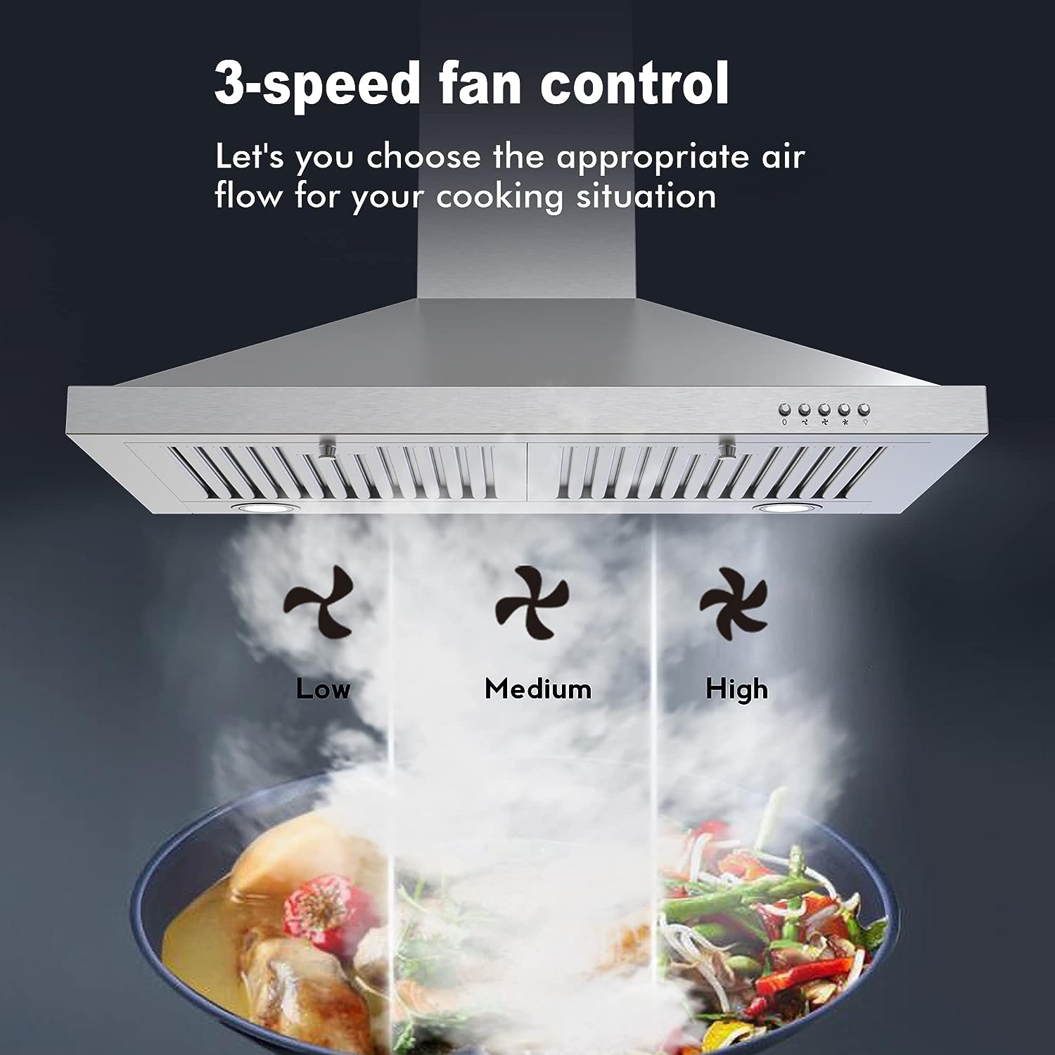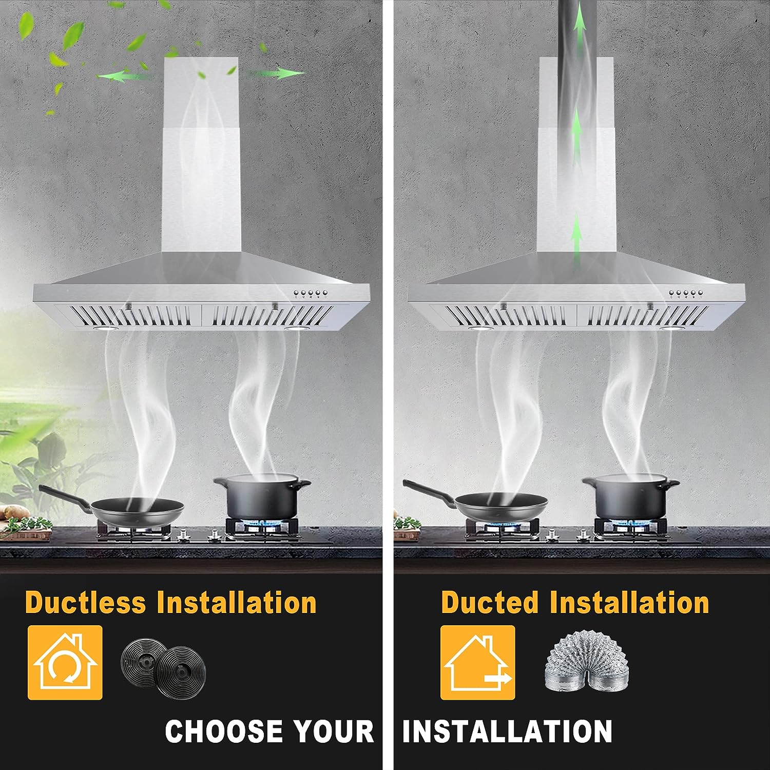 Generic Range hood 30 inch.600 CFM Wall Mount Range Hood with LEDs Light.Permanent Filter.3 Speed Fan. in Stainless Steel.Chimney-Style Stove Vent with Ducted/Ductless Convertible Duct.Carbon Filter included