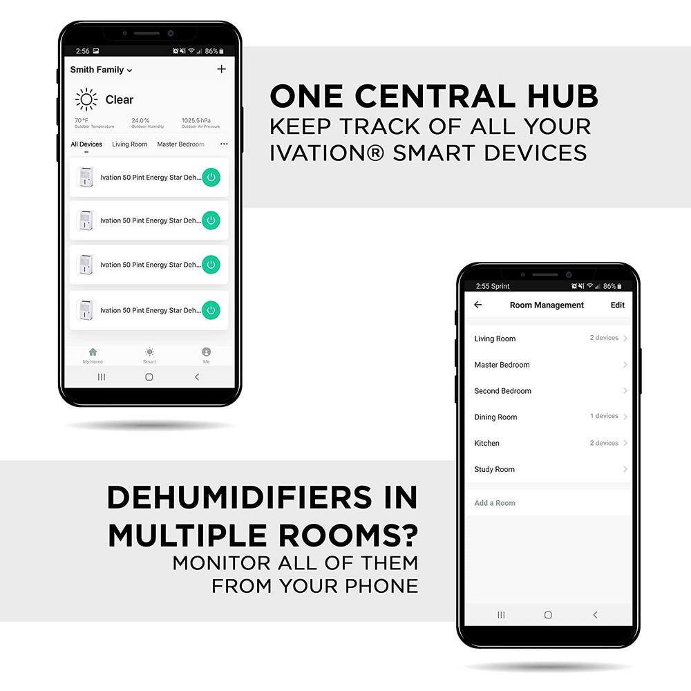 Ivation IVADUWIFI50WP 50 Pint Smart Wi-Fi Energy Star Dehumidifier with Pump. Hose Connector and App