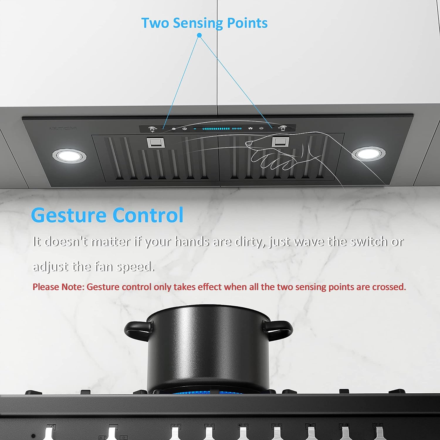 IKTCH 36 inch Black Built-in/Insert Range Hood. 900 CFM Ducted/Ductless Stainless Steel Kitchen Vent Hood with 4 Speed Gesture Sensing&Touch Control Panel(IKB01-36-BSS)