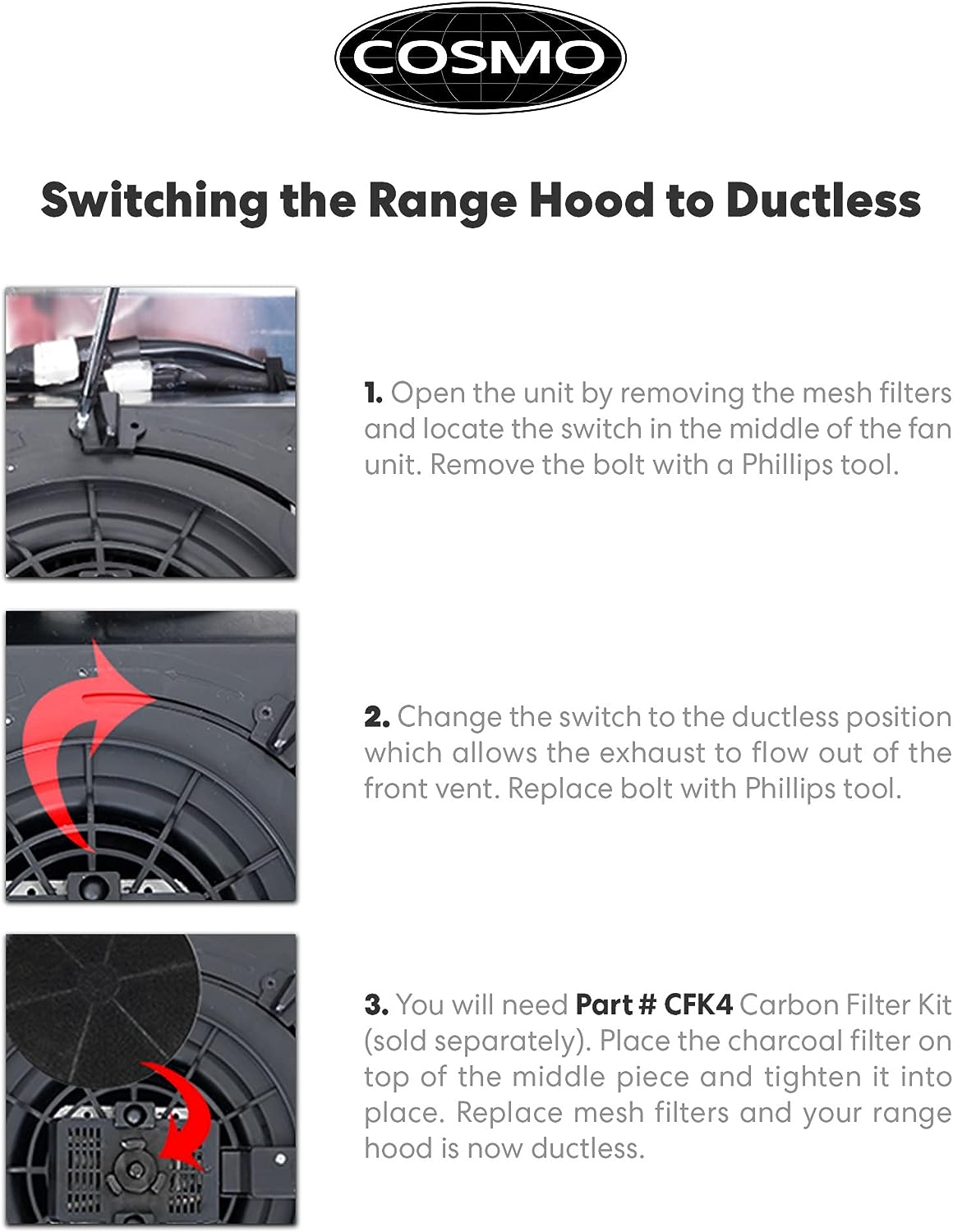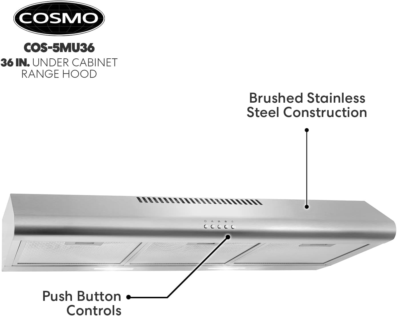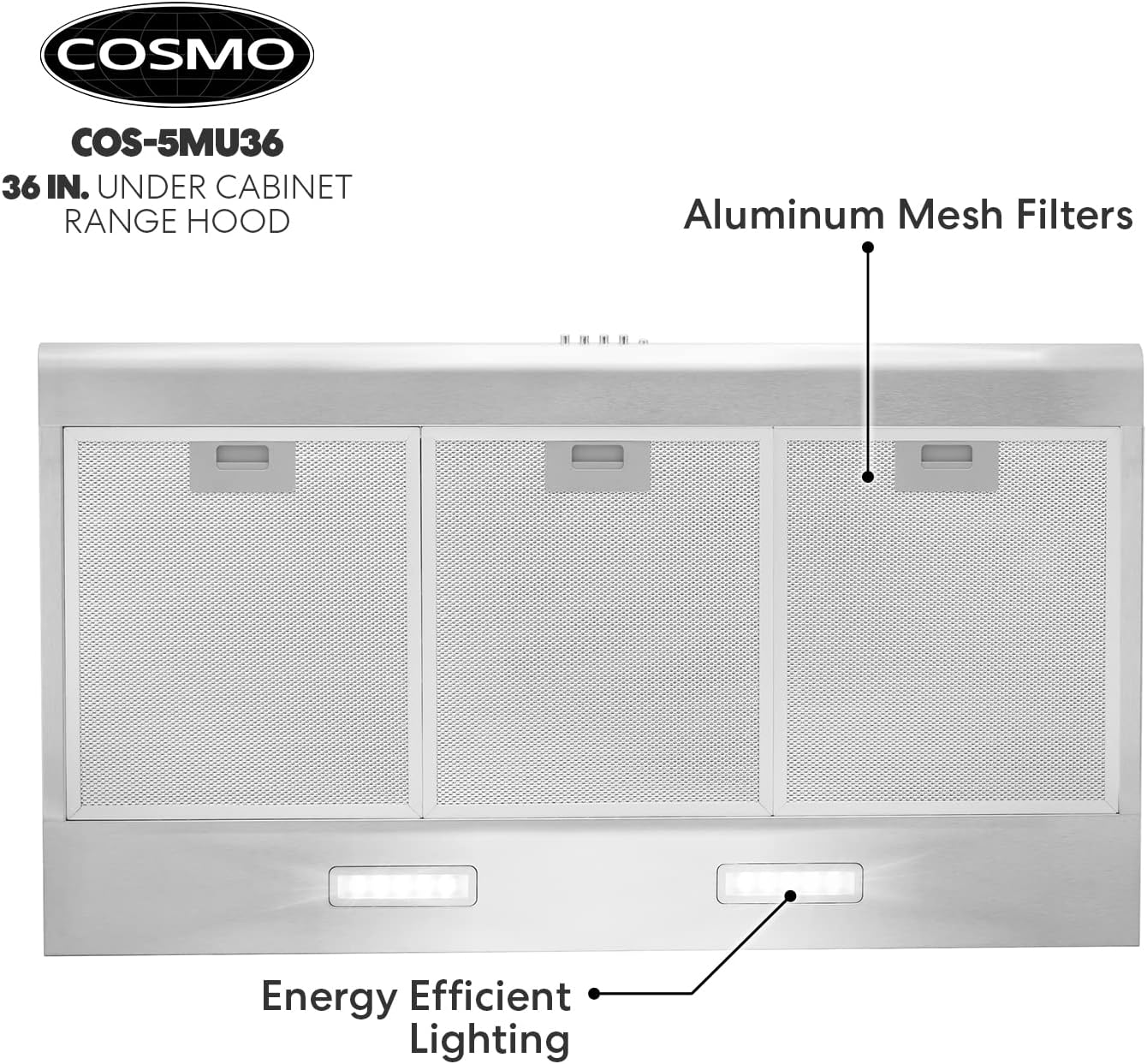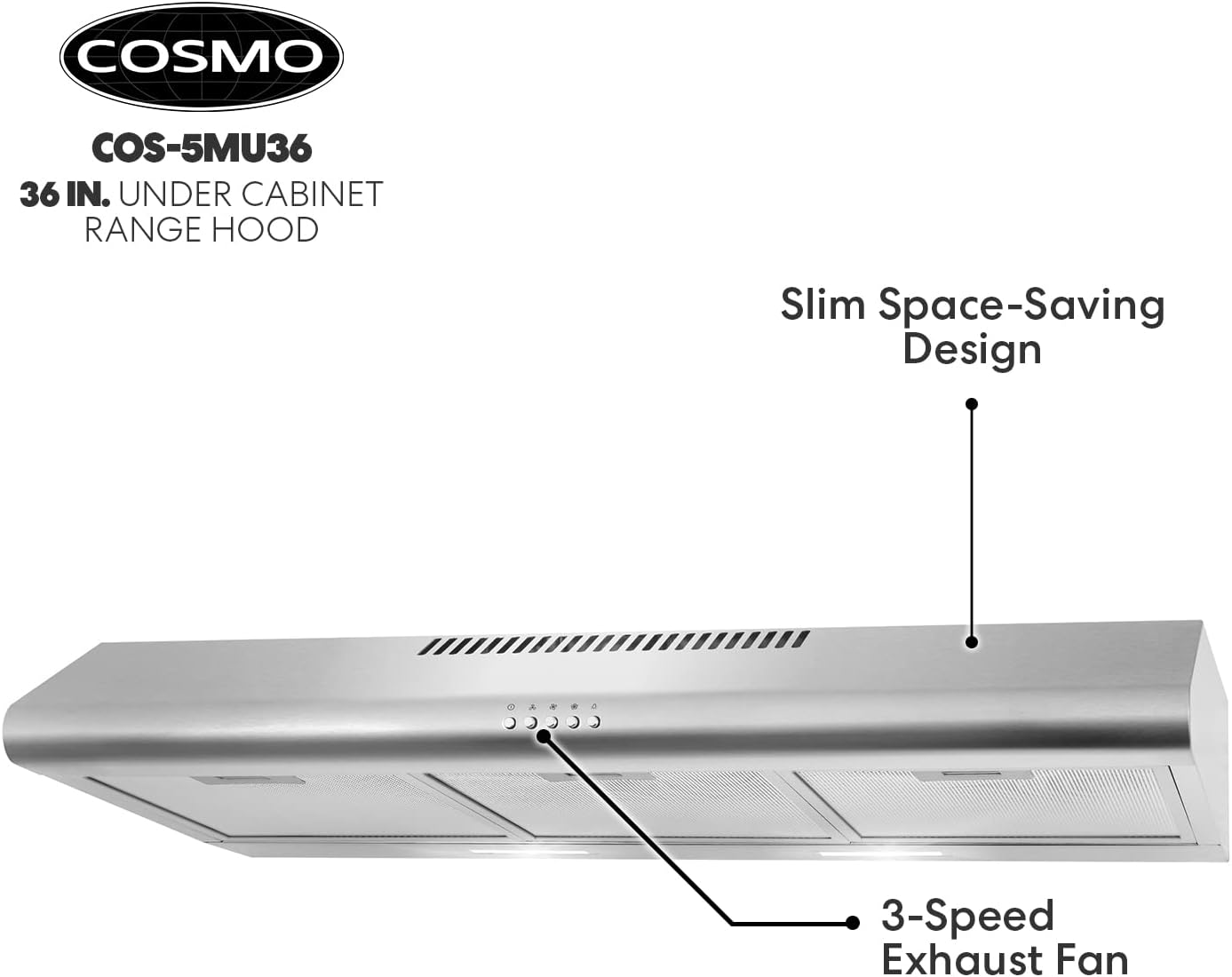 COSMO COS-5MU30 30 in. Under Cabinet Range Hood Ductless Convertible Duct. Slim Kitchen Stove Vent with. 3 Speed Exhaust Fan. Reusable Filter and LED Lights in Stainless Steel. 30 inch