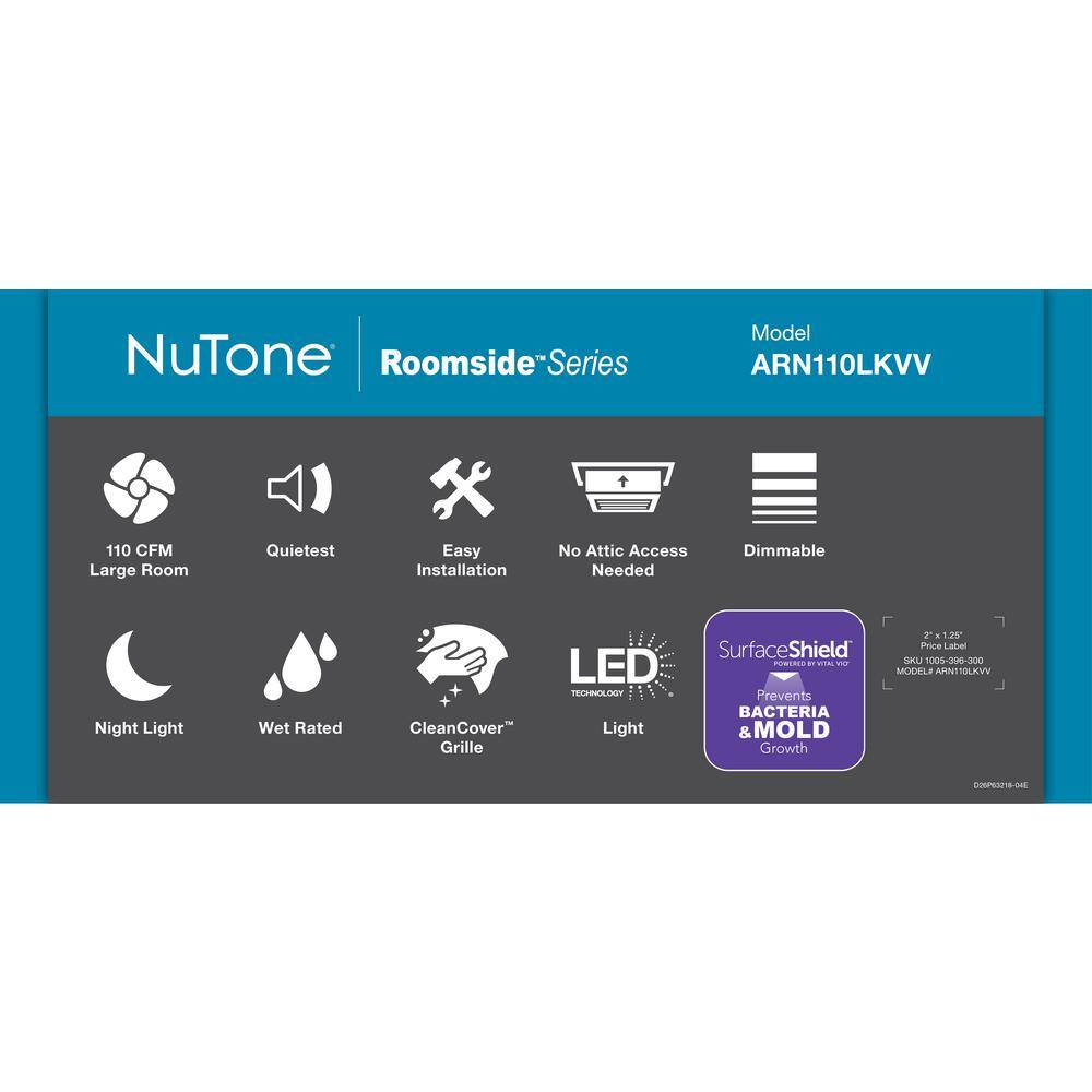 Broan-NuTone AERN110K Roomside Series 110 CFM Ceiling Bathroom Exhaust Fan with CleanCover ENERGY STAR