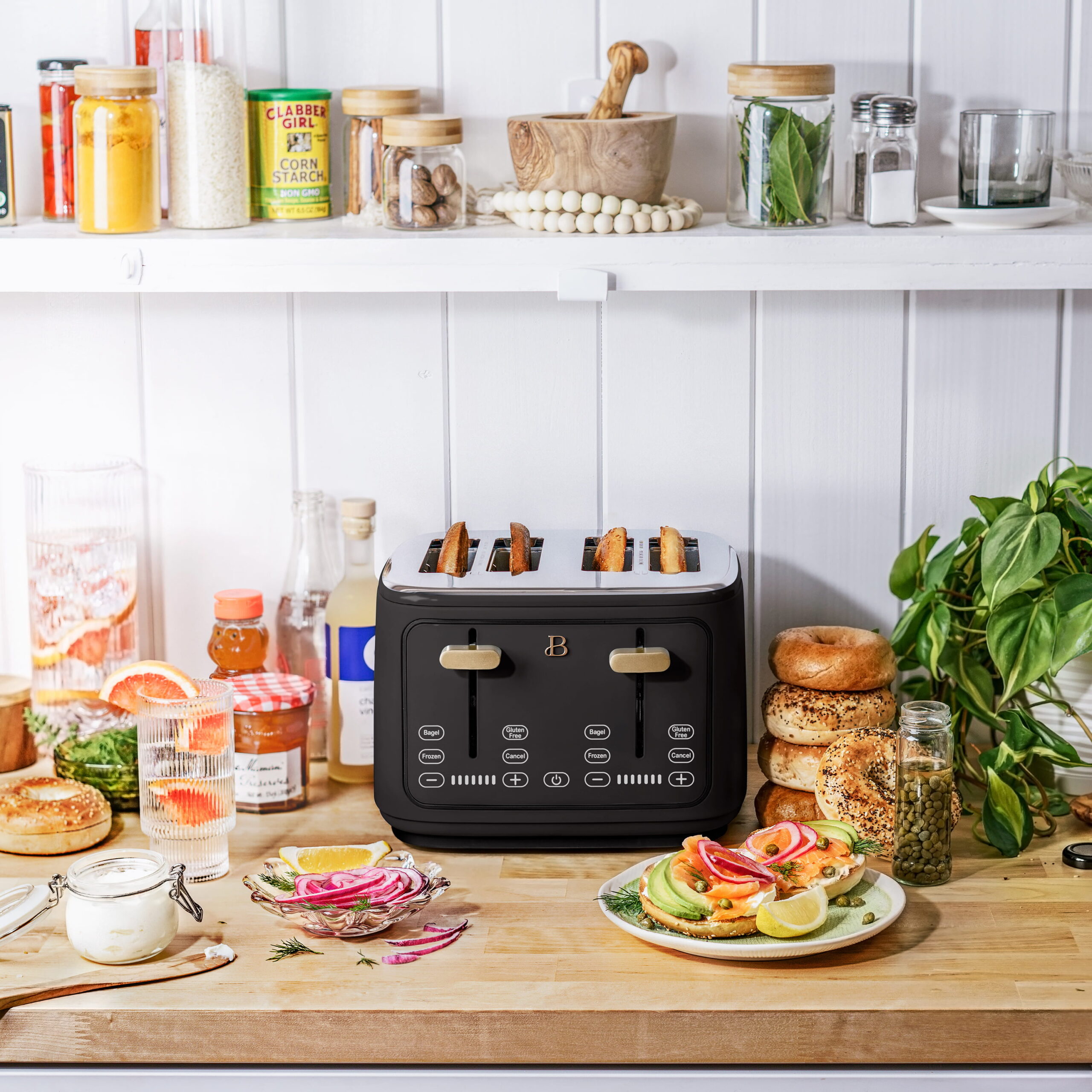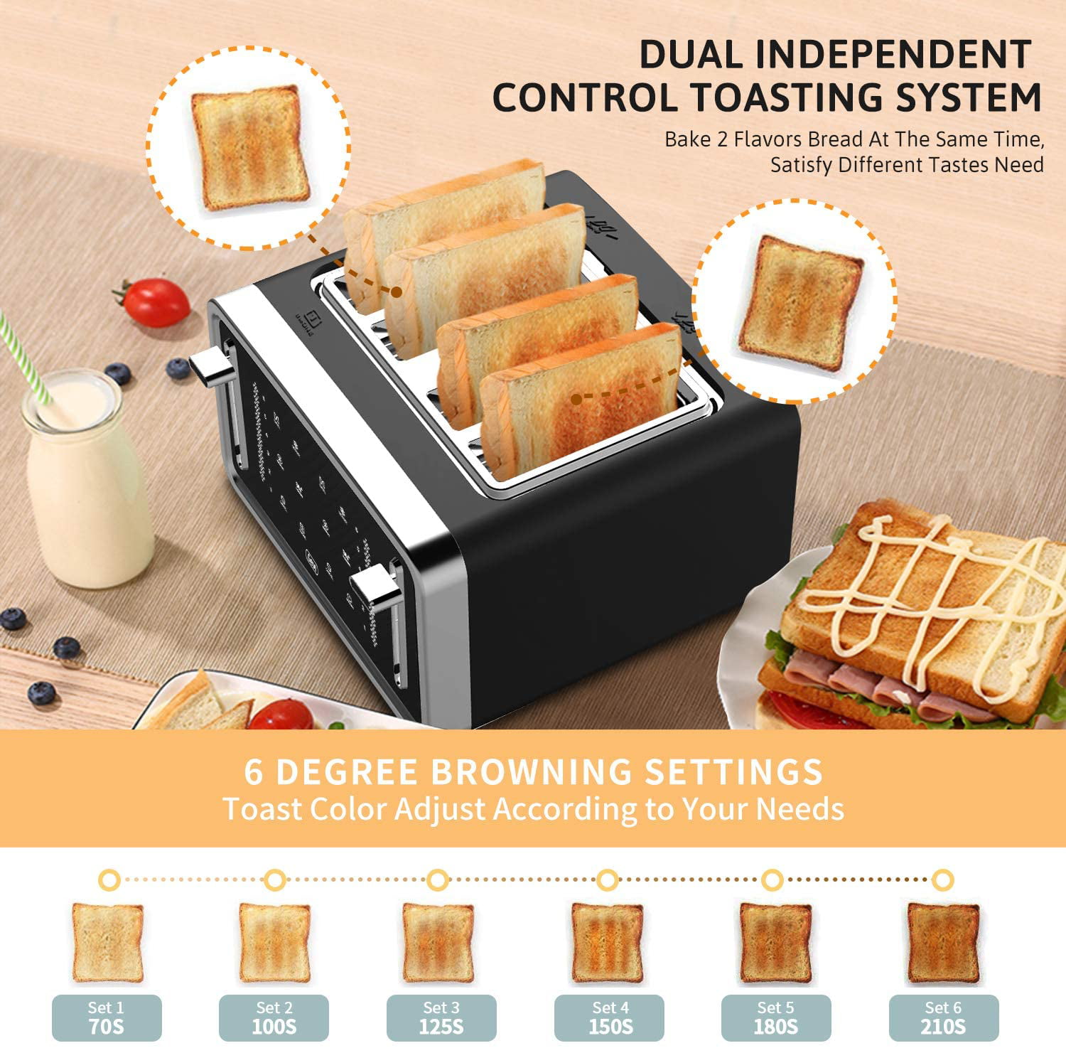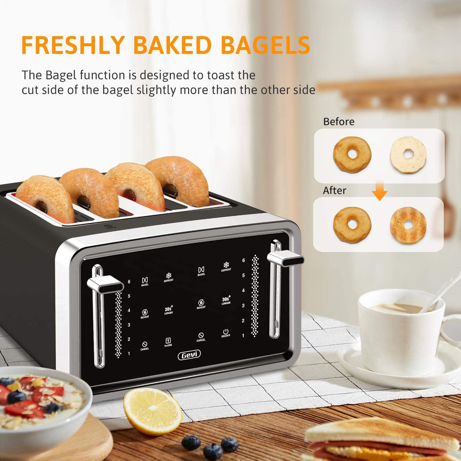 Gevi 4 Slice Toaster LED Digital Touchscreen Extra-Wide Slots Black + Silver