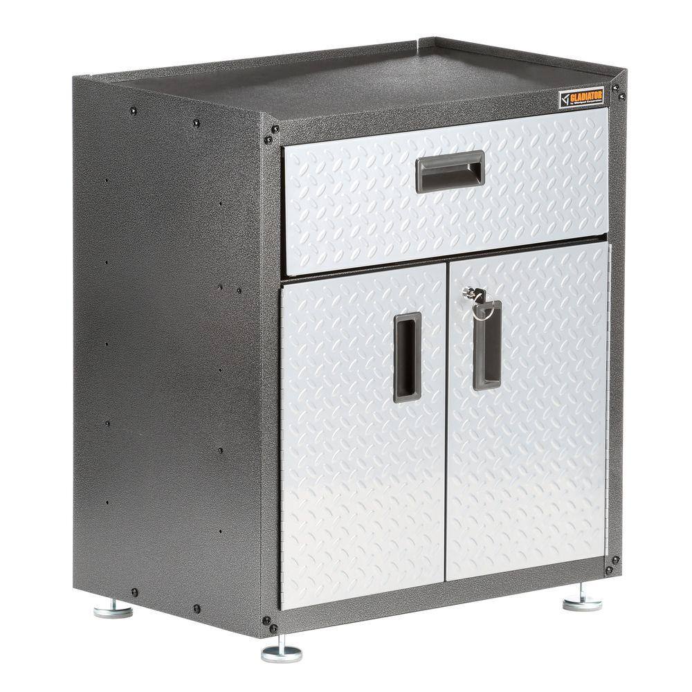 Gladiator GAGB28KDYG Ready-to-Assemble Steel Freestanding Garage Cabinet in Silver Tread (28 in. W x 31 in. H x 18 in. D)