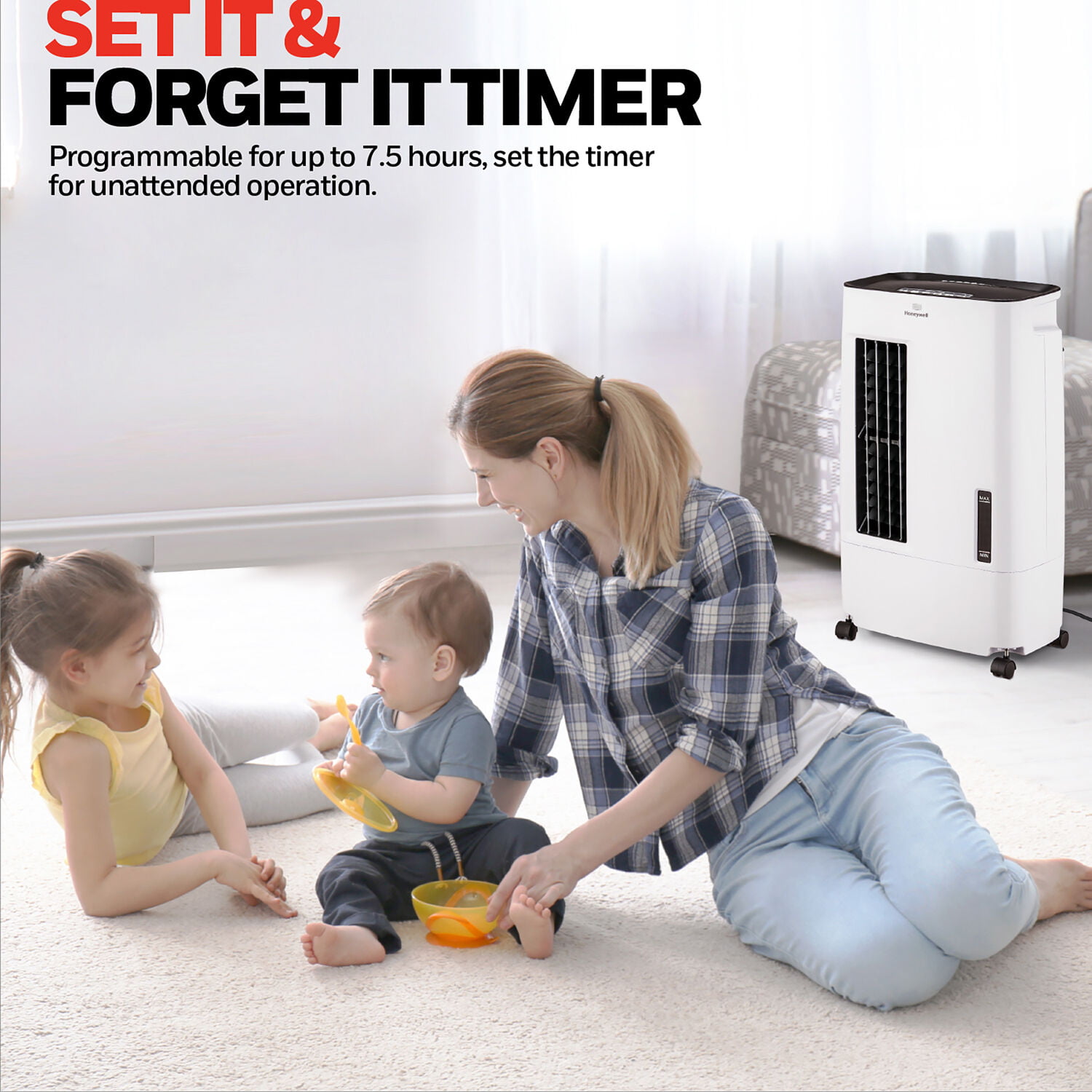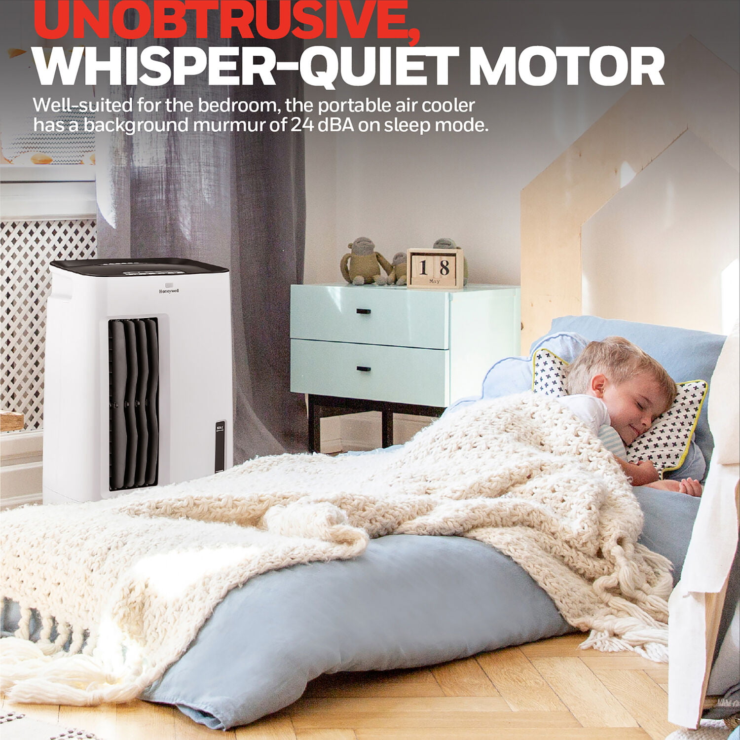 Honeywell 176 CFM Indoor Evaporative Air Cooler (Swamp Cooler) with Remote Control in White/Gray