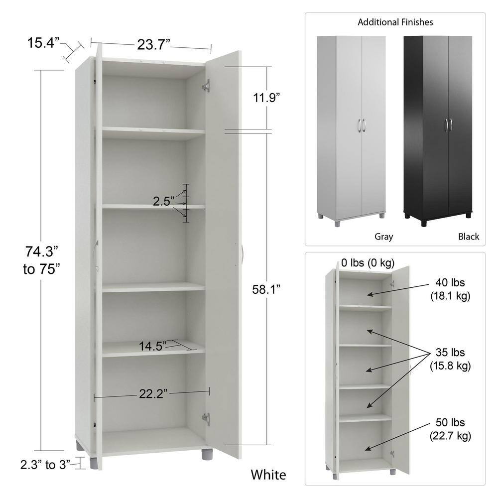 SystemBuild DE68253 Lonn 23.7 in. x 75 in. x 15.39 in. 2 Doors 5 Shelves Freestanding Utility Storage Cabinet in Dove Gray