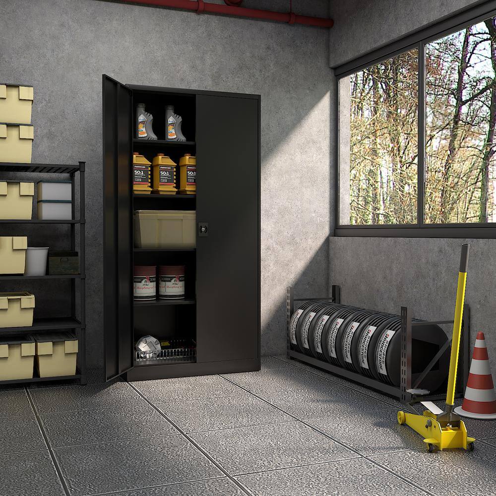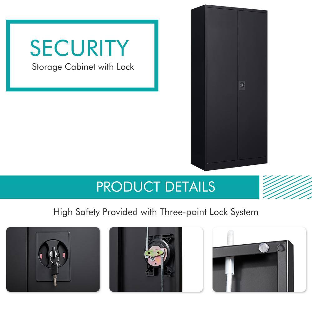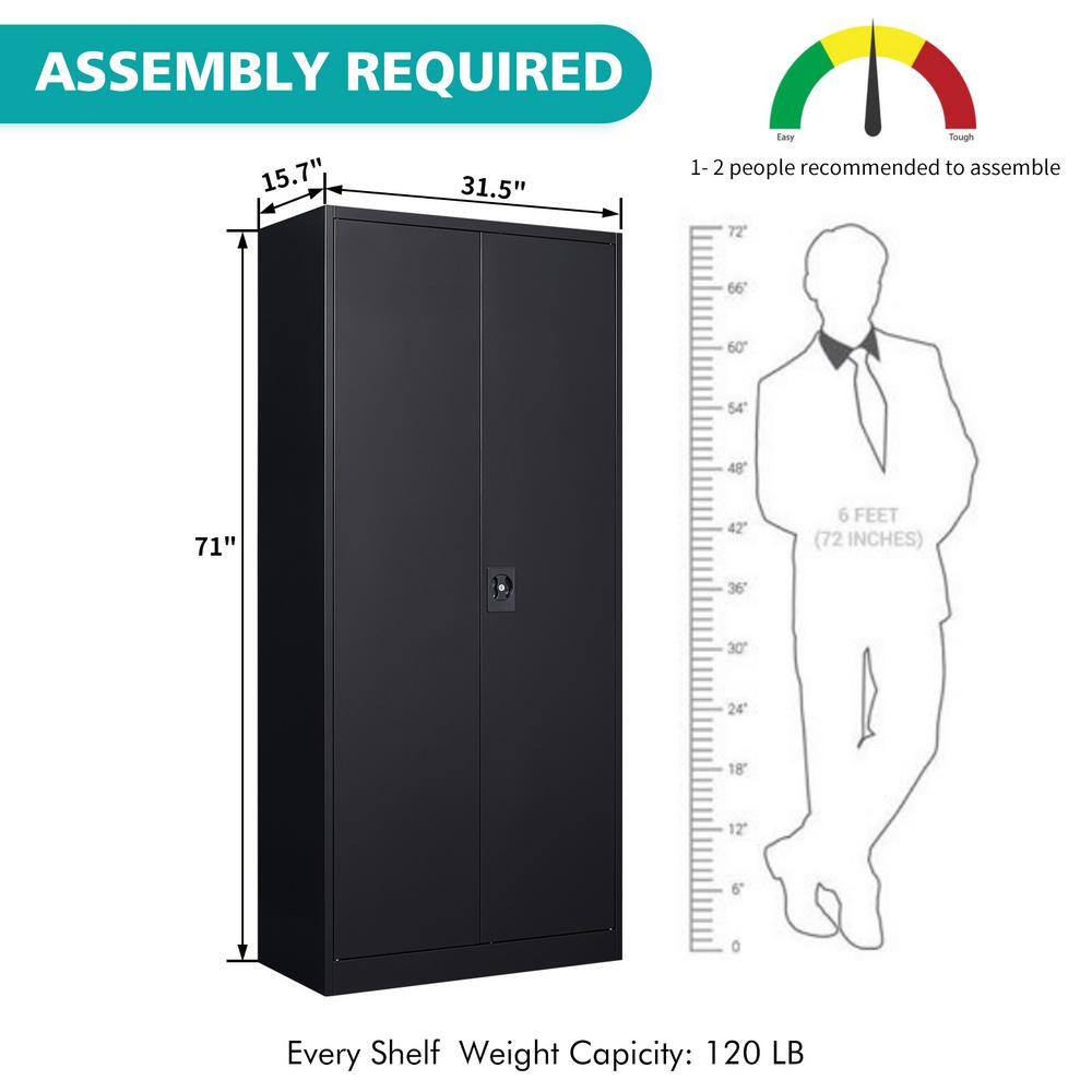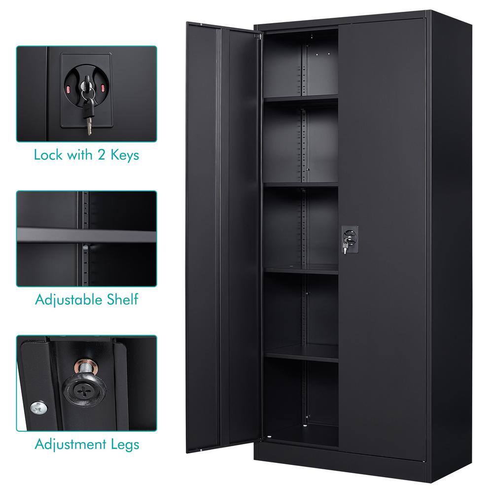 Mlezan DBXS2022160B Metal Garage Storage Cabinet in 31.5″ W x 71″ H x 15.7″ D Black Cabinet 5 Tier Shelves with Doors