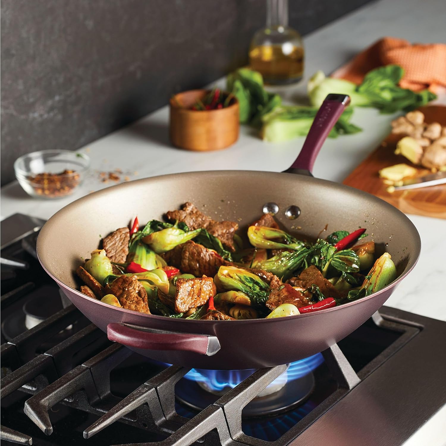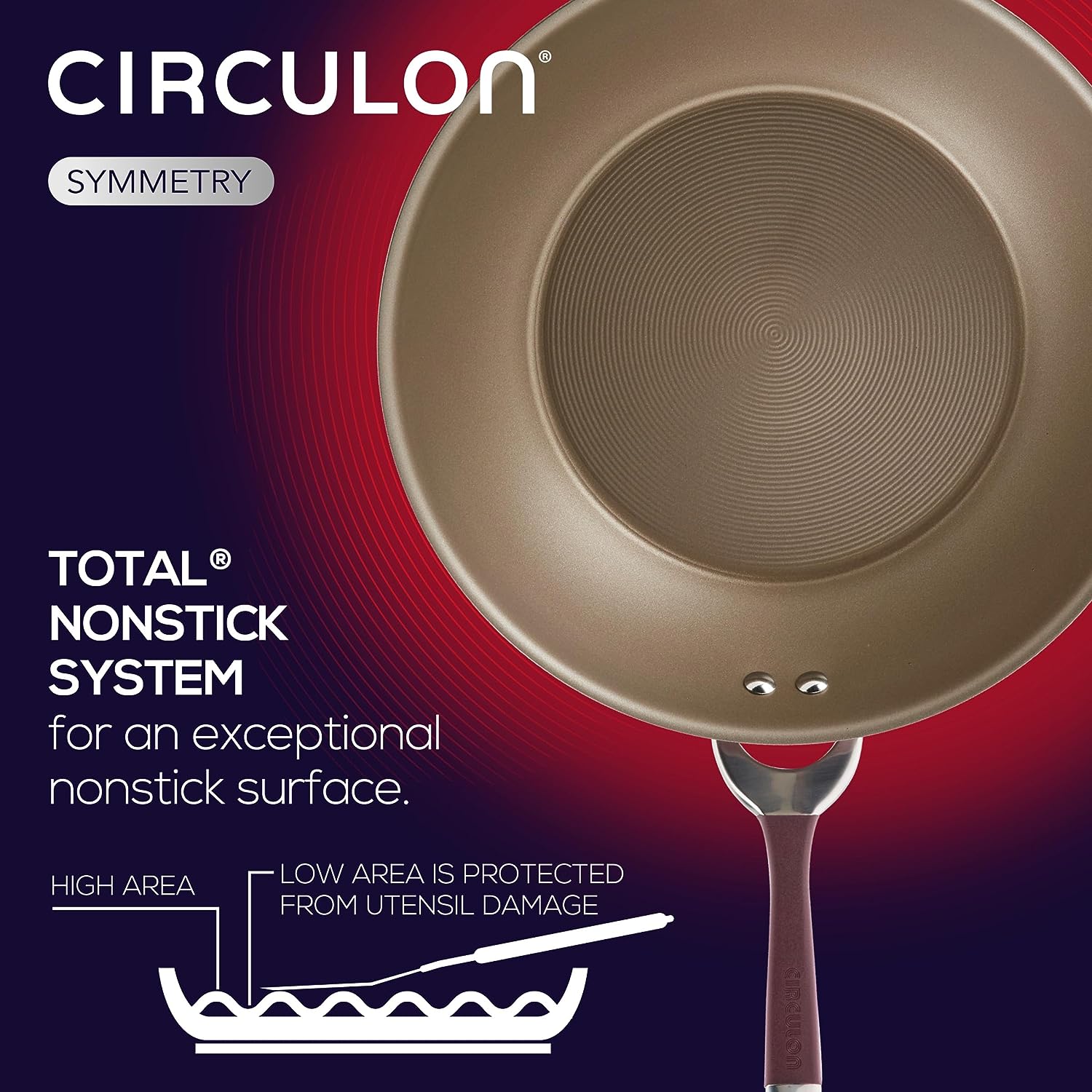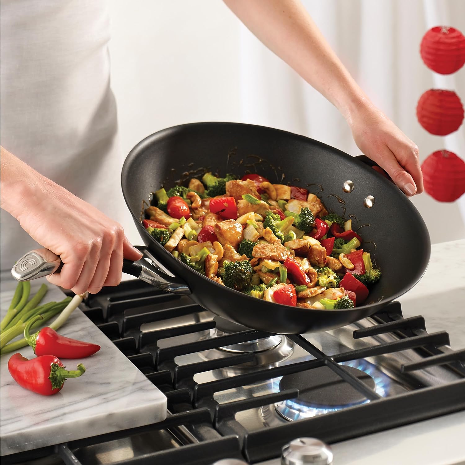 Circulon Symmetry Hard Anodized Nonstick Wok / Stir Fry Pan with Helper Handle - 14 Inch. Red