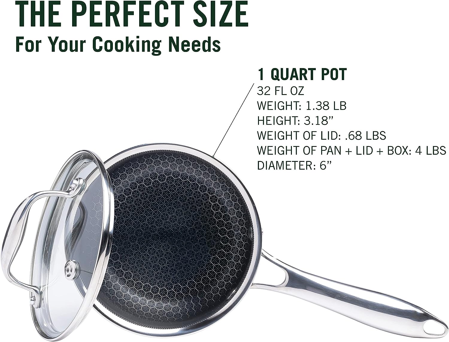 HexClad 2 Quart Hybrid Nonstick Saucepan and Lid. Dishwasher and Oven Friendly. Compatible with All Cooktops