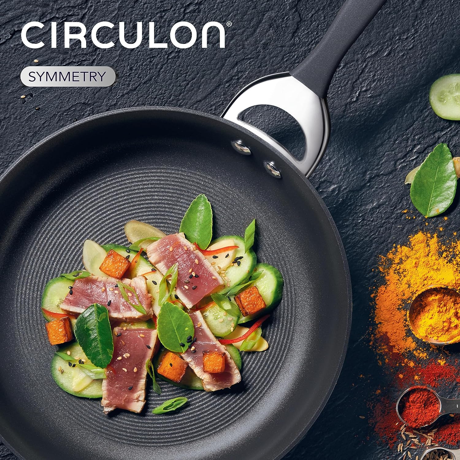 Circulon Symmetry Hard Anodized Nonstick Stir Fry / Wok Pan with Helper Handle - 14 Inch. Black